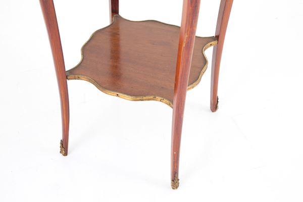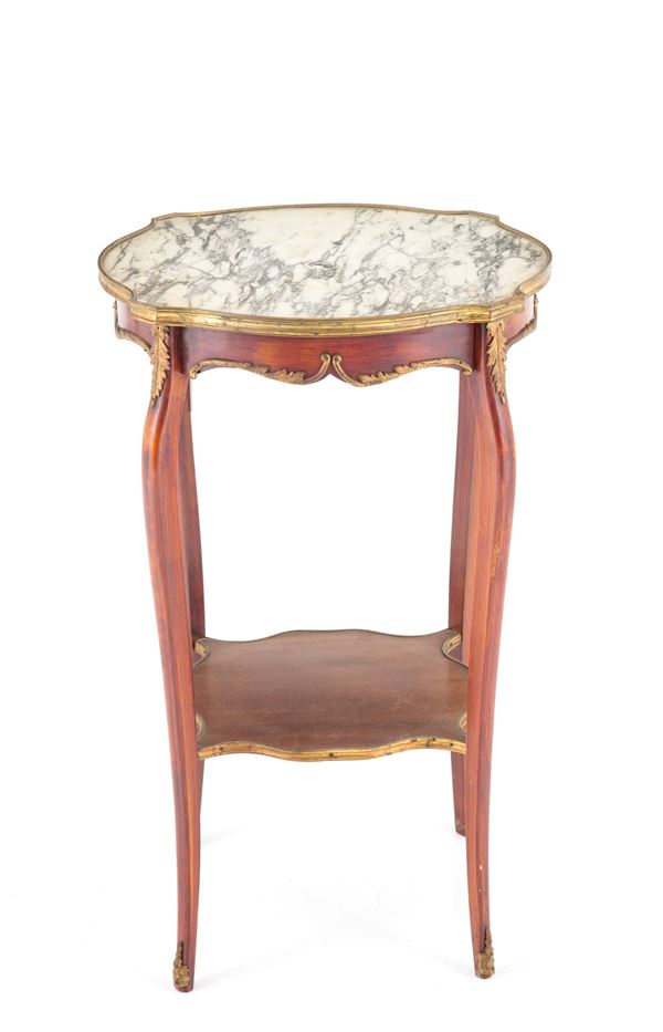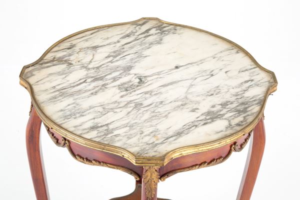 Small table in stained wood with gilded bronze fittings and a polylobed breccia marble top. 19th century. Defects.