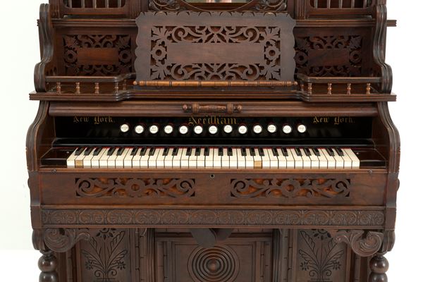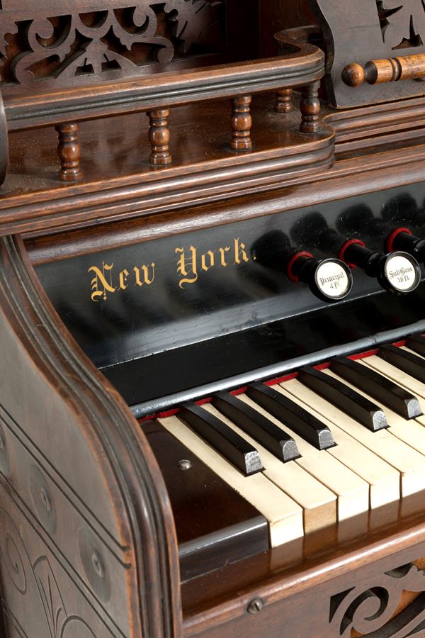 Air organ with finely carved wooden pipes. 19th century. Minor defects.