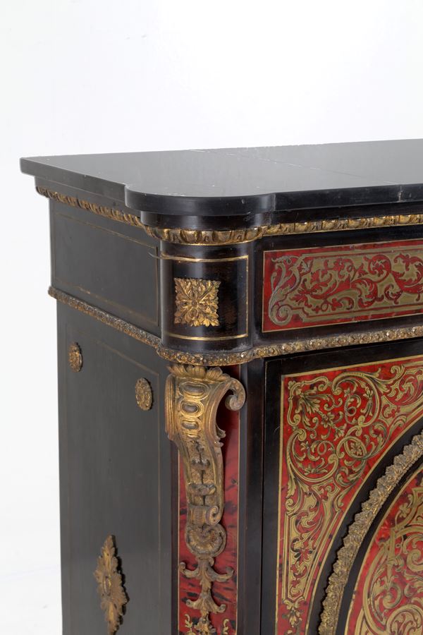 Boulle-type sideboard in ebonized wood. 19th century. Defects and shortcomings.