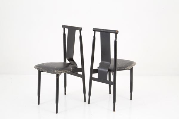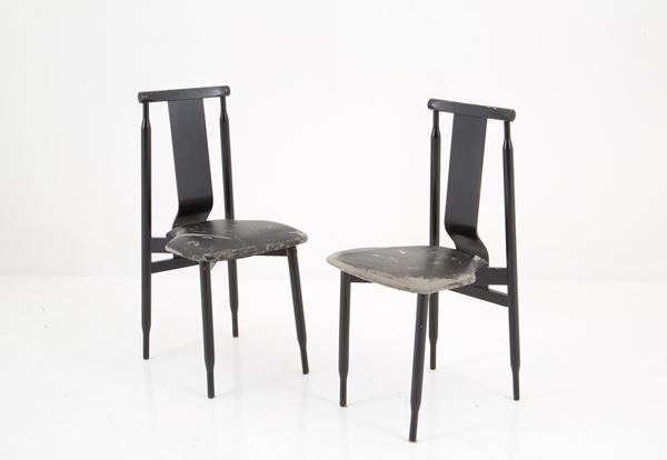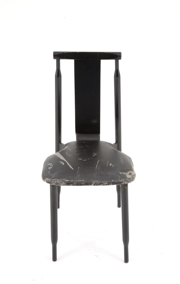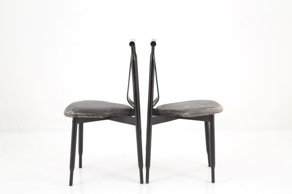 Six wooden and eco-leather chairs, Lierna model. Production GAVINA (Attr.). Defects and signs of wear and tear.