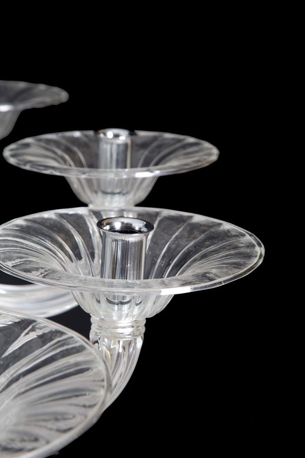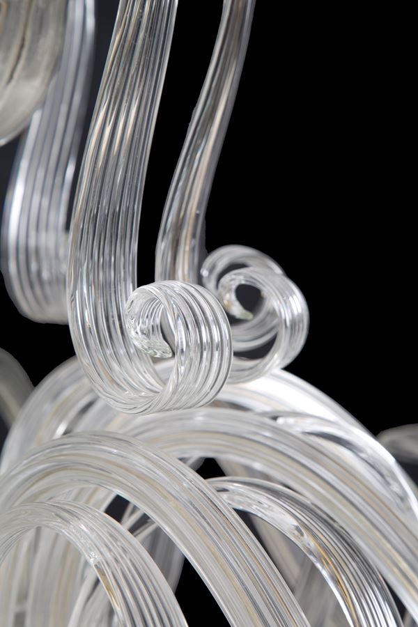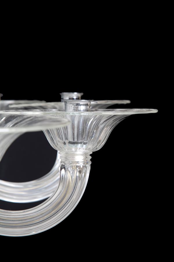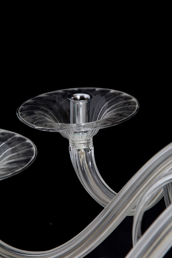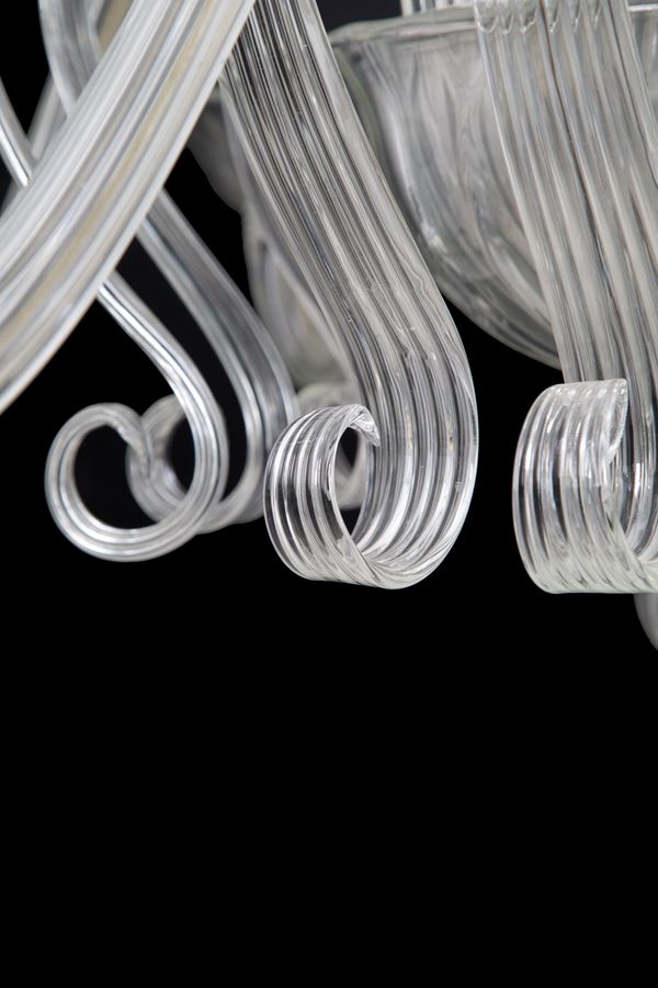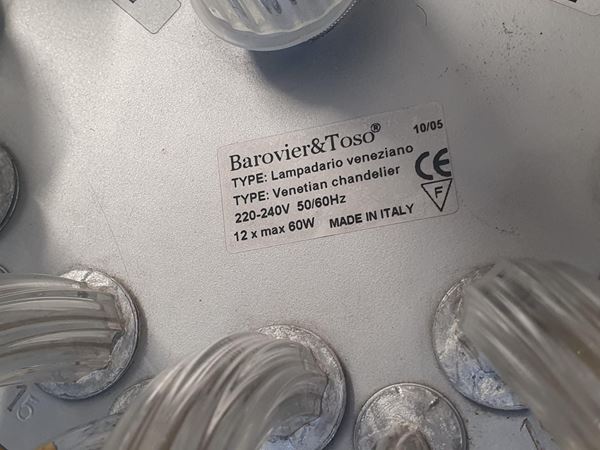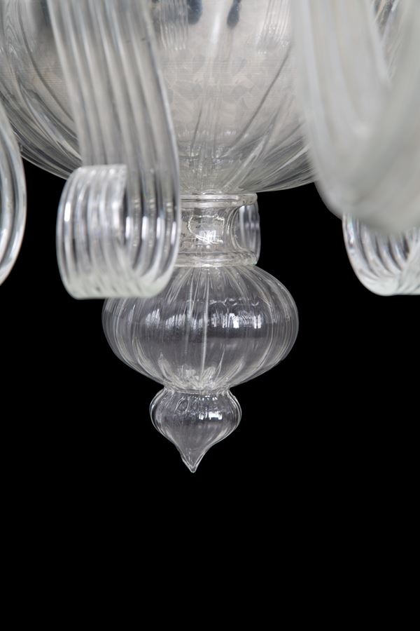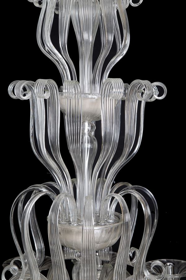 Twelve-light chandelier, Redon model, in Murano glass. BAROVIER & TOSO production. With manufacturer's label on the stem. 1960s.