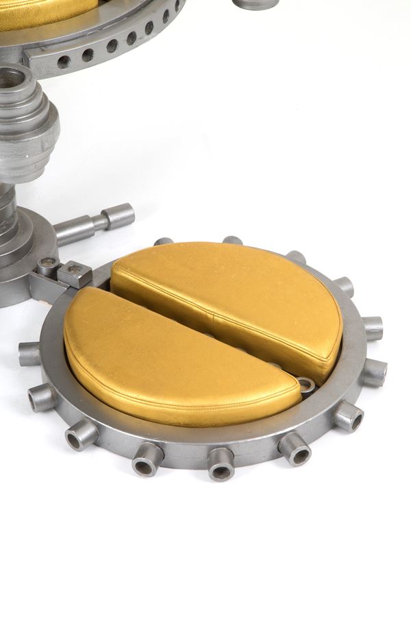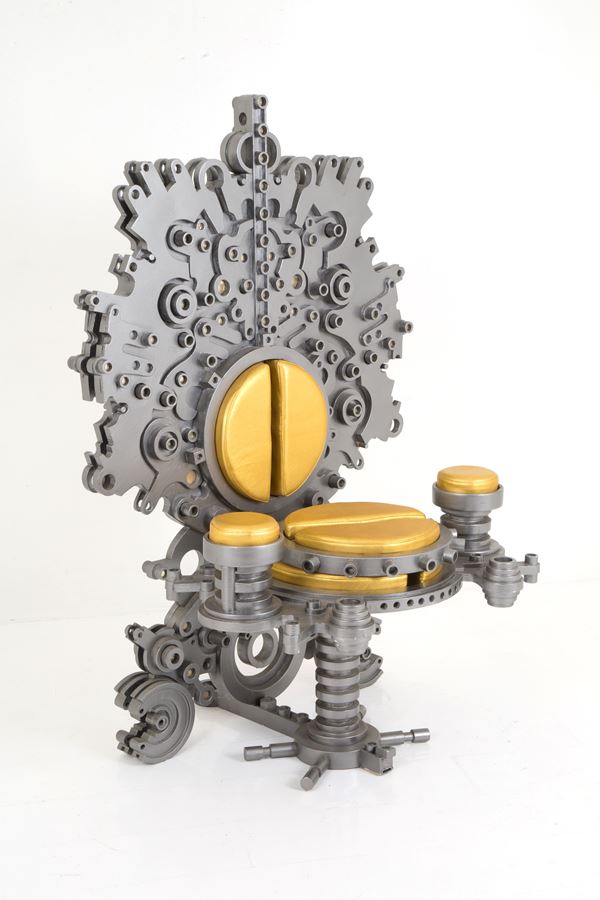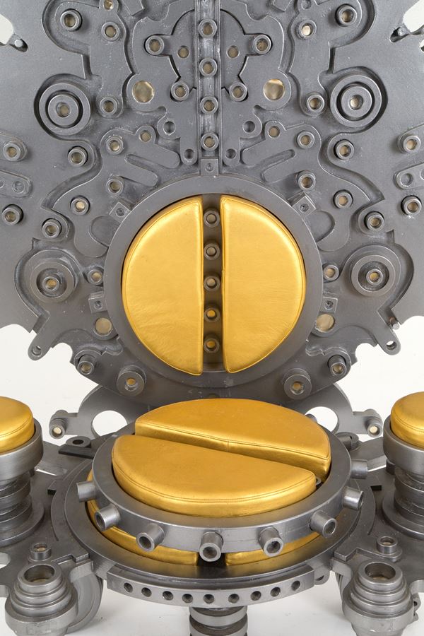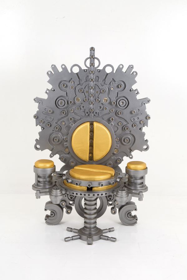 Nabu throne in lacquered wood and padded golden imitation leather. 2015. Minor defects. Published in Massimo Domenicucci and Flavio Mangione (eds.), Futuro Anteriore - Future Perfect, Florence, 2014, pp. 50-51.