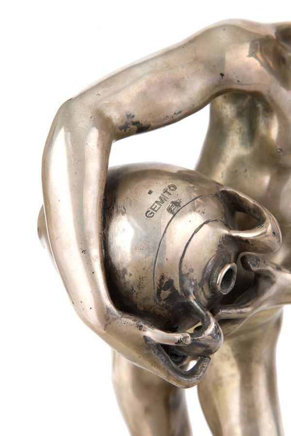 Silver sculpture depicting "THE WATER CARRIER", approx. 9700 gr. Signed and hallmarked on the amphora.