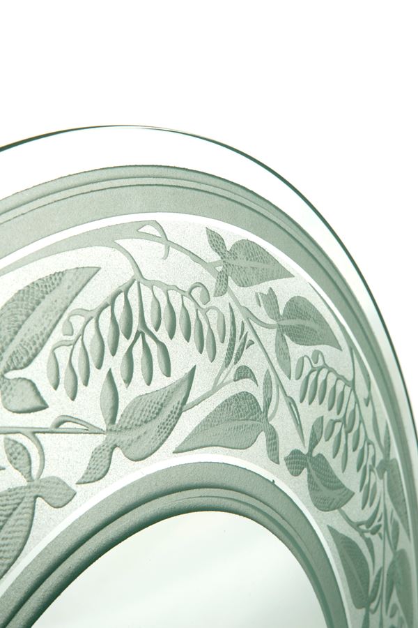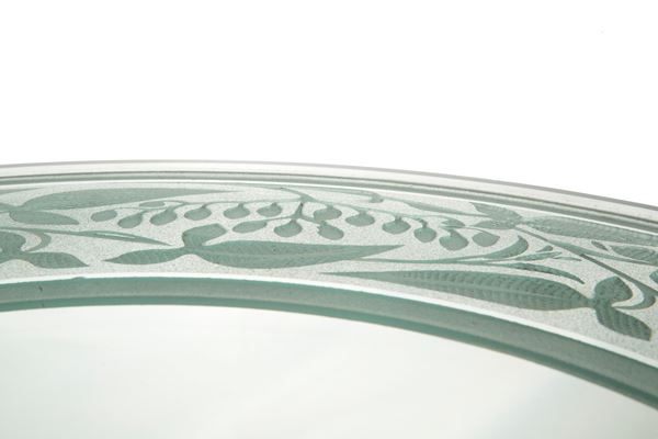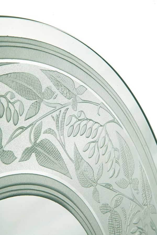 Plate in ground and satin glass with floral motifs. 20th century. Slight defects.