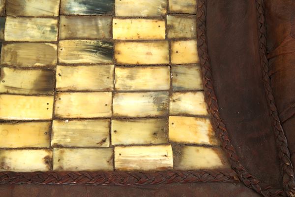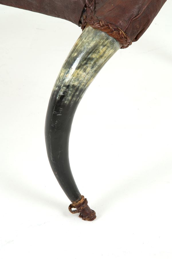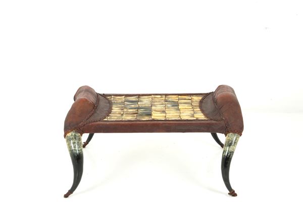 Coffee table with horn structure and top and leather inserts. 1970s. Signs of wear and tear.