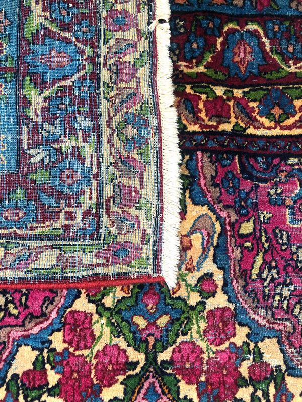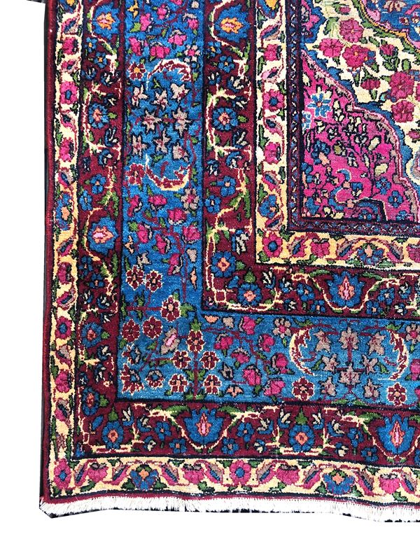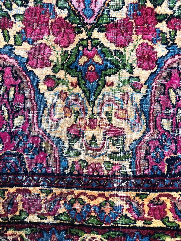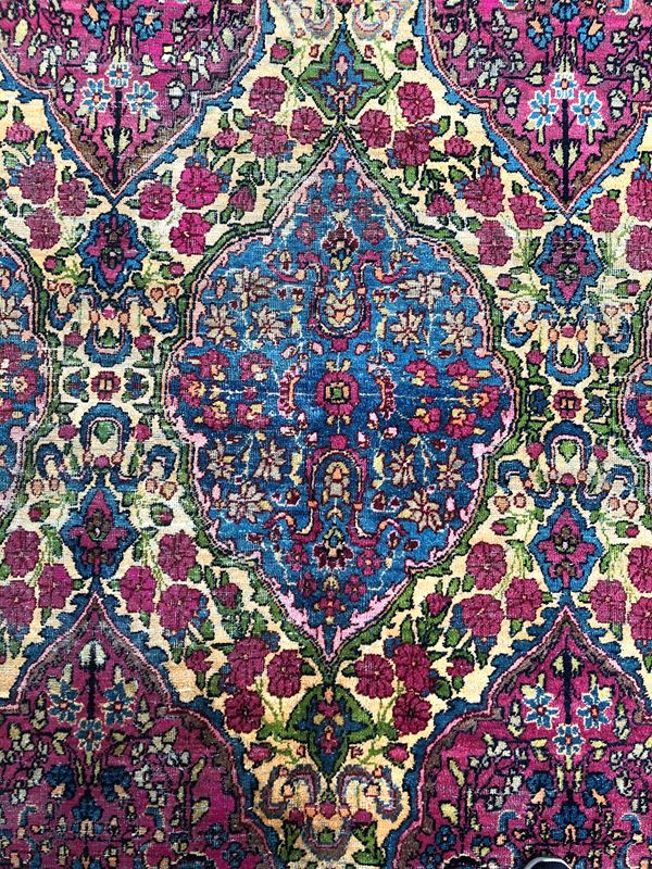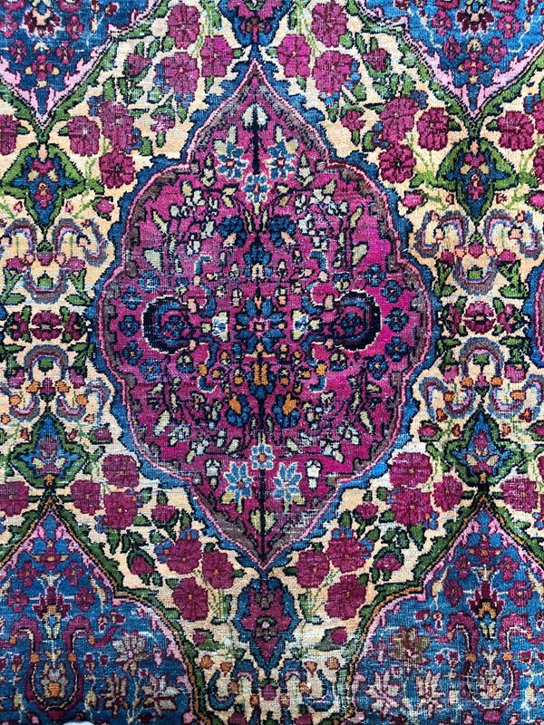 Kirman carpet. Persia. Late 19th century. No field restorations, small areas slightly worn, four original perimeter sides.