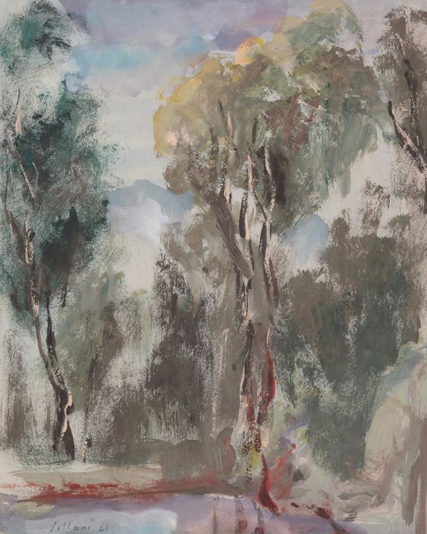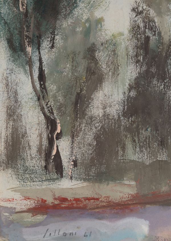 Watercolor on paper depicting "LANDSCAPE". Signed and dated '41 lower left. In a gilded frame.