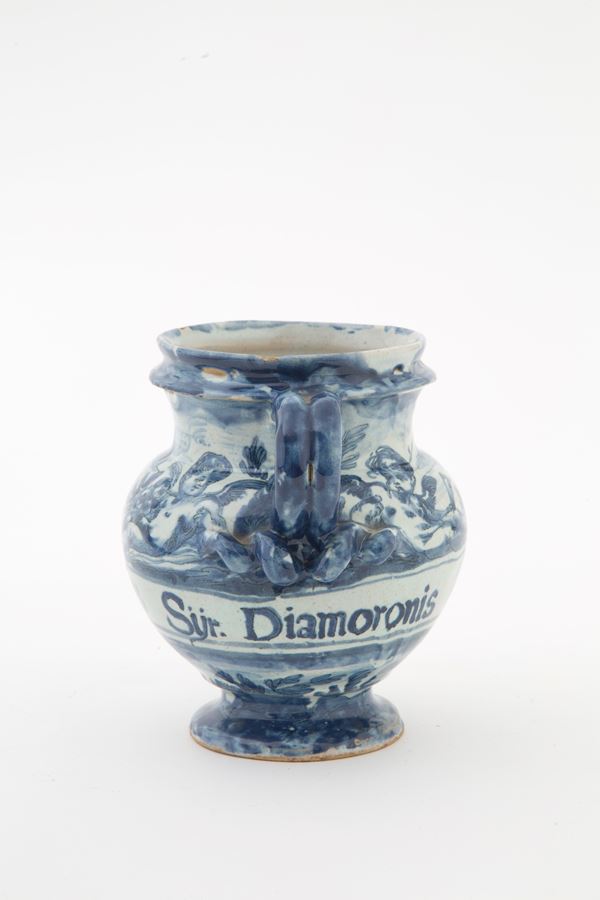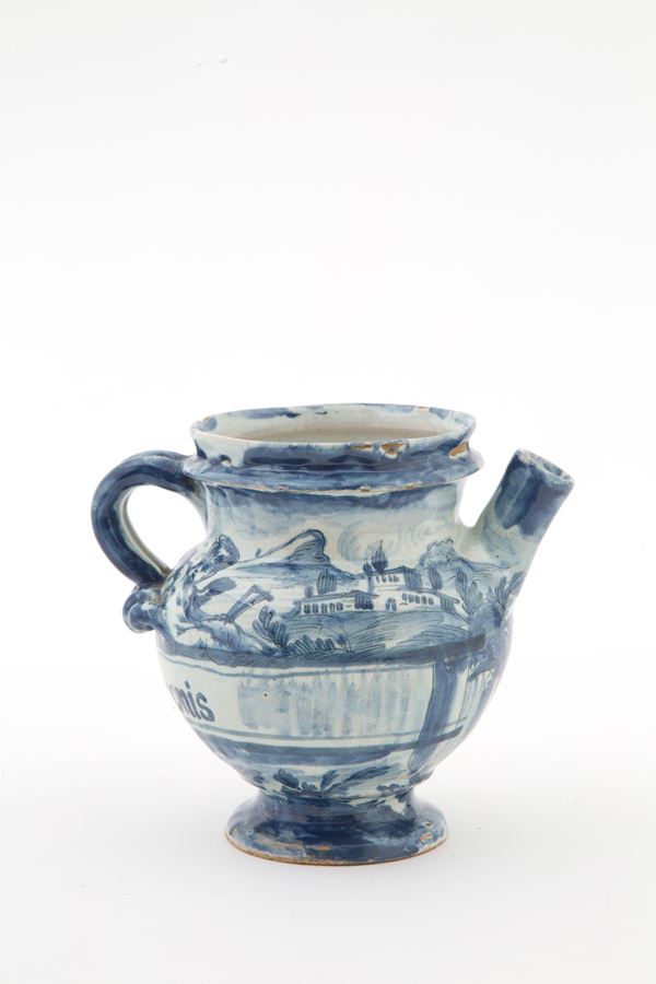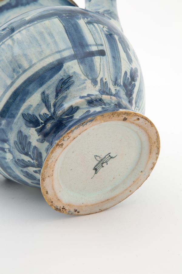 Majolica jug. Savona manufacture. Marked on the bottom. 17th century. Slight defects.