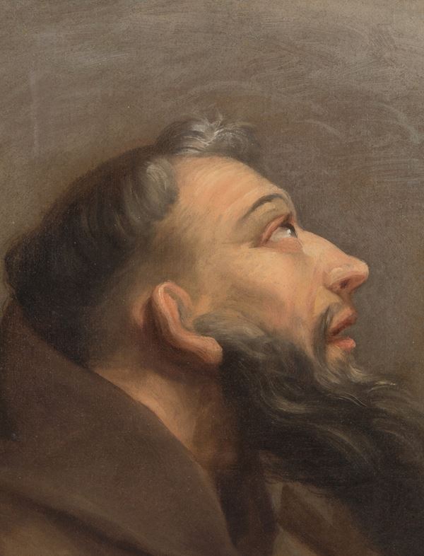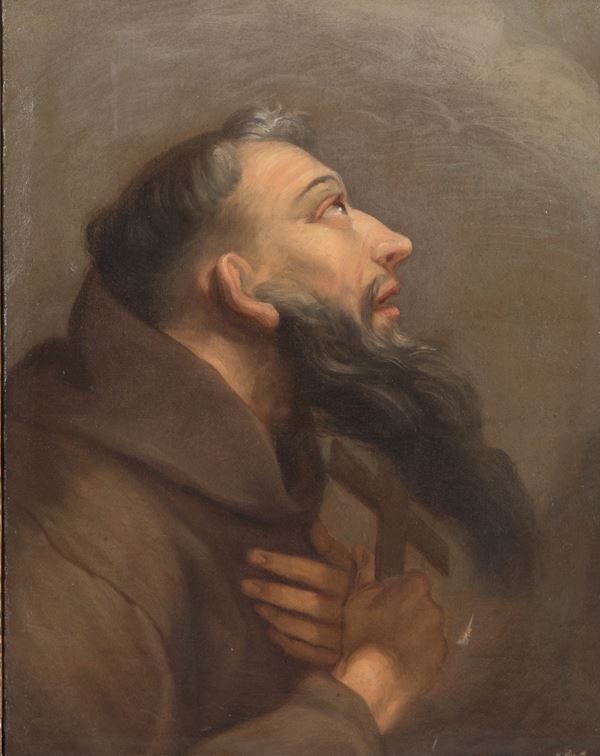 Oil painting on canvas depicting "FRIAR". Early 18th century. In carved and gilded wooden frame. Defects and restorations. Already relined and re-stretched.