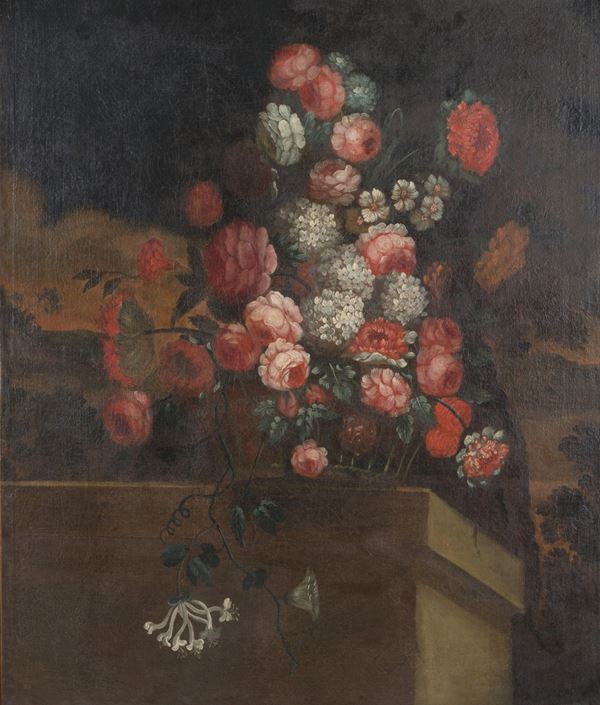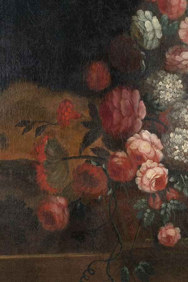 Oil painting on canvas depicting "STILL LIFE". 17th century. In gilded wooden frame. Restoration. Already relined and re-stretched.
