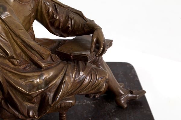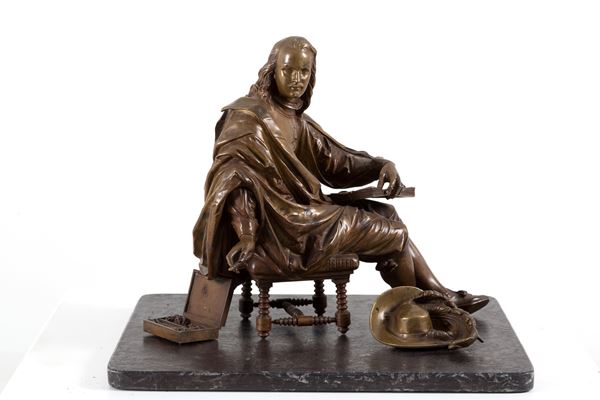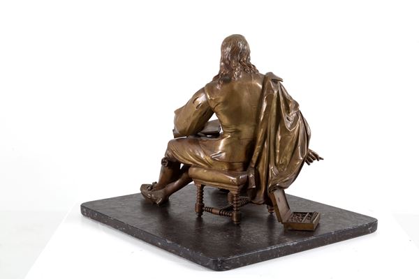 Bronze sculpture depicting "ARTIST". Signed on the edge of the stool.