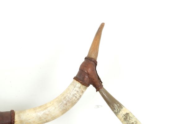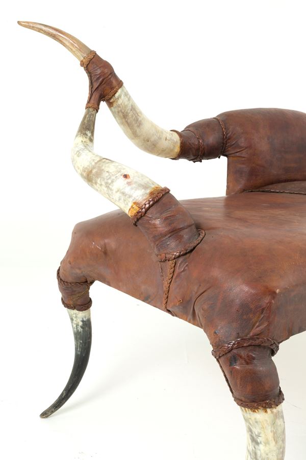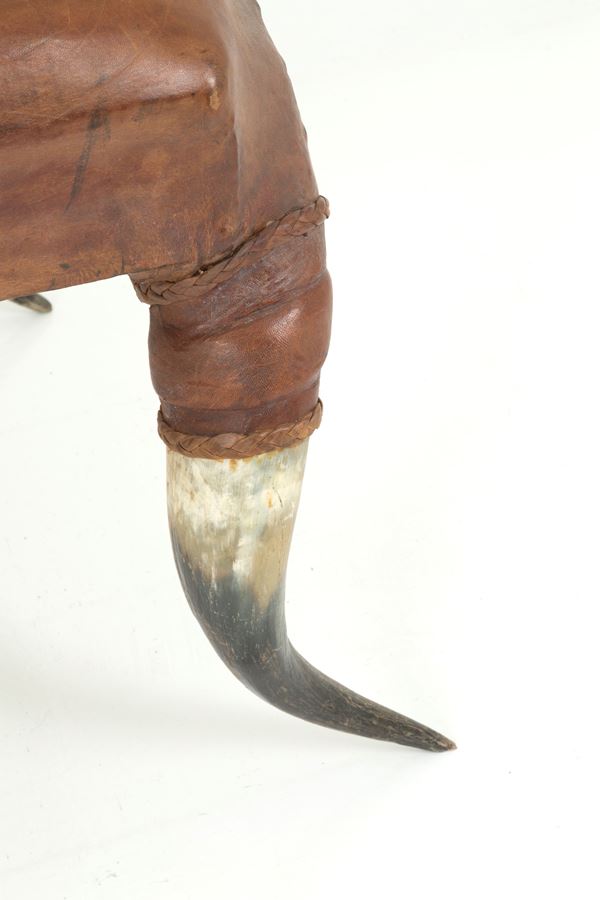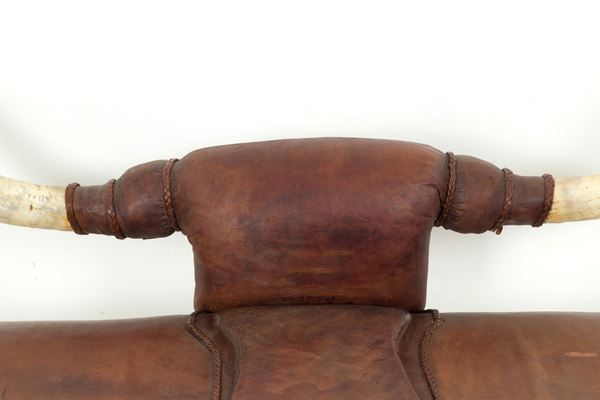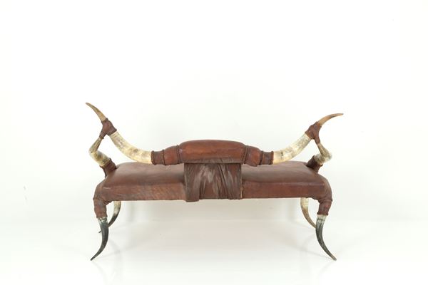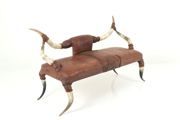 Sofa with horn structure with leather back and seat. 1970s. Signs of wear and tear.