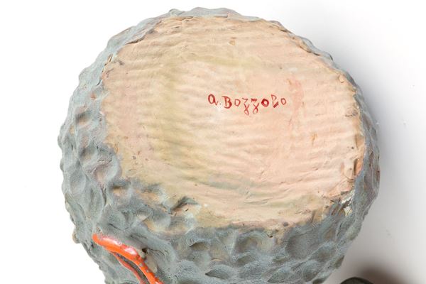 Terracotta vase with lid. Signed A.BOZZOLO on the bottom. Restoration on the lid.