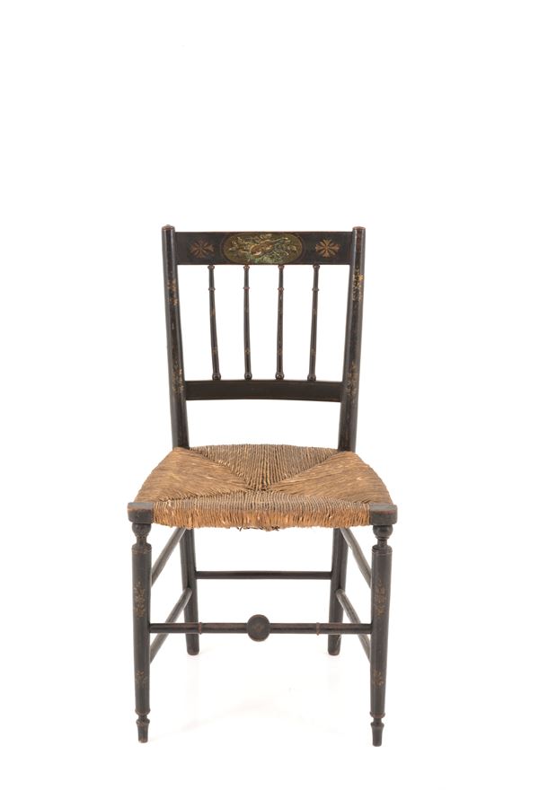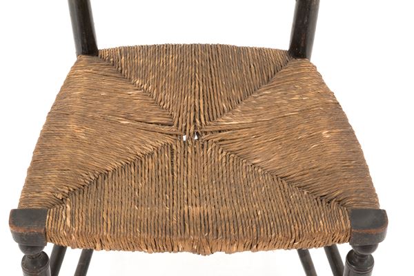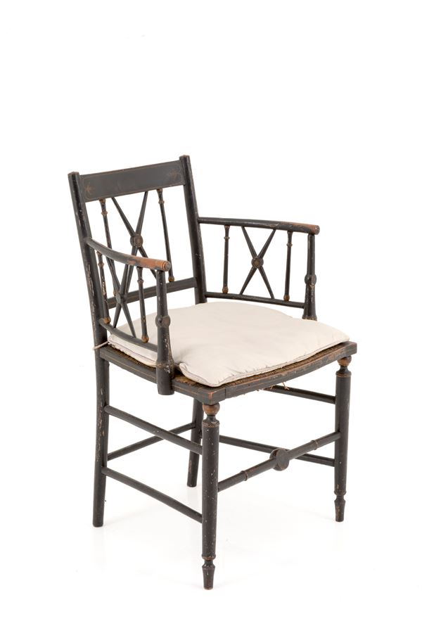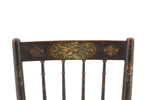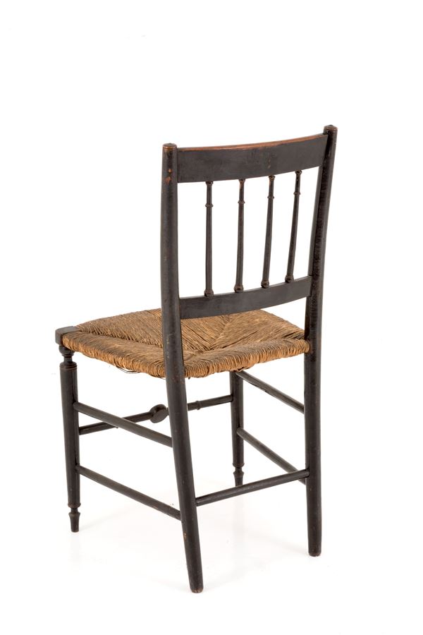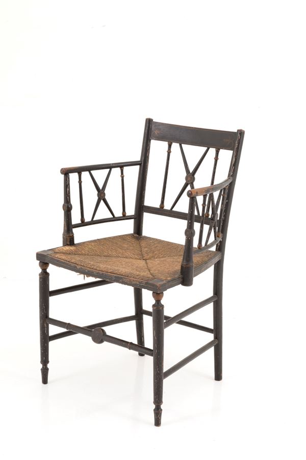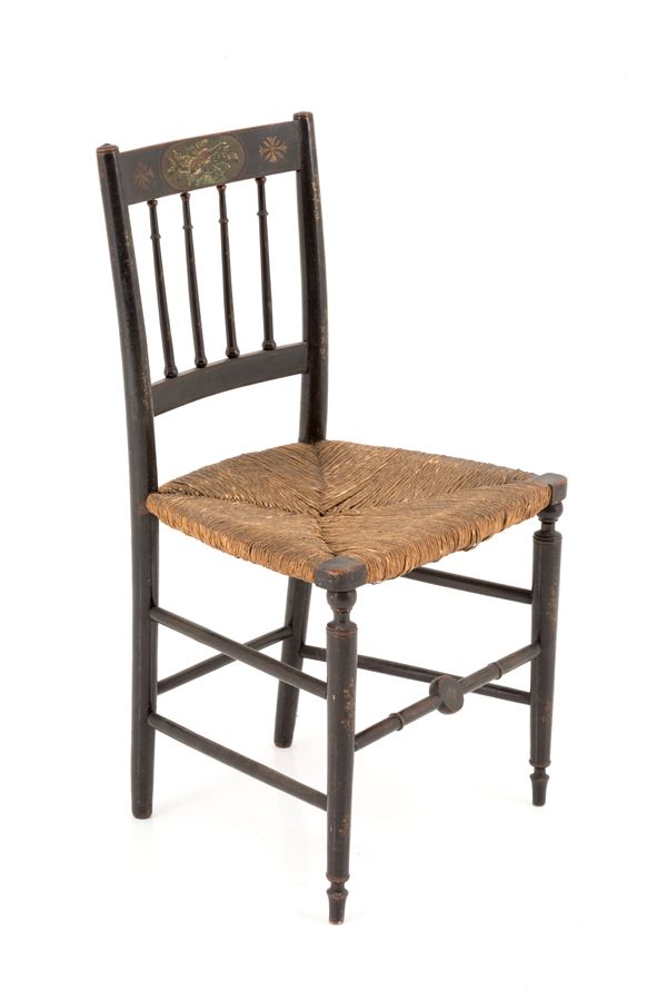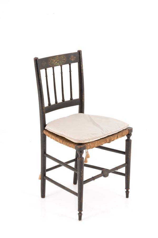 An armchair and five chairs in lacquered and gilded wood with straw seats. 19th century. Defects and shortcomings.