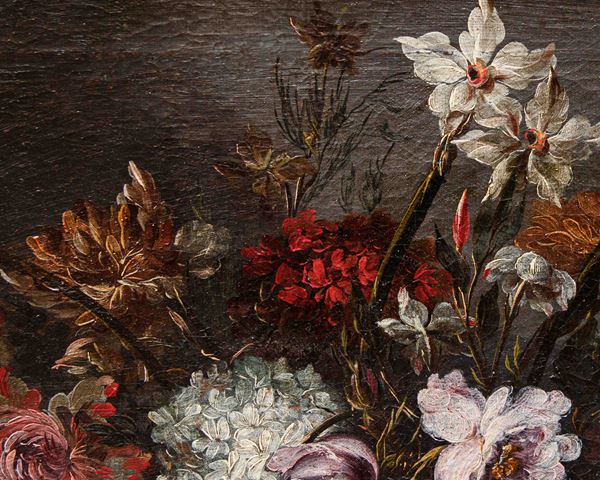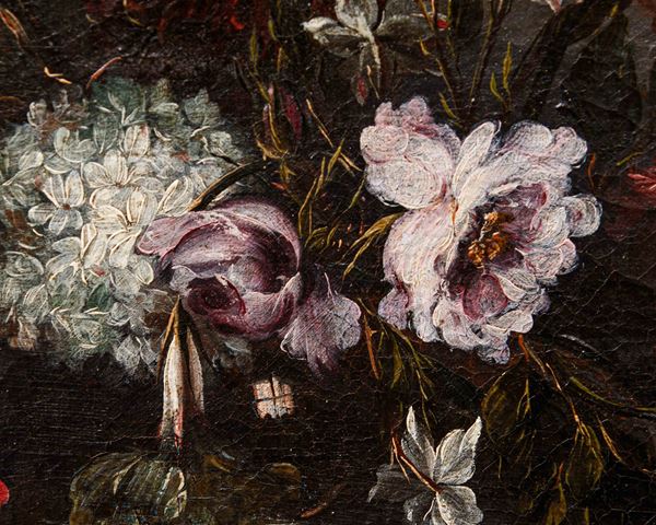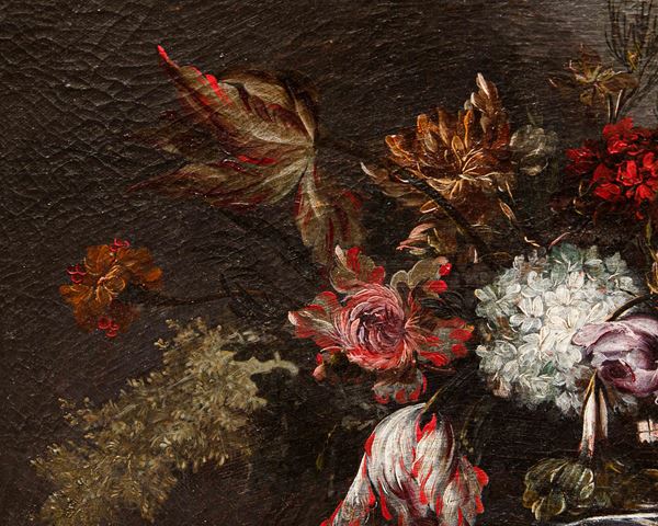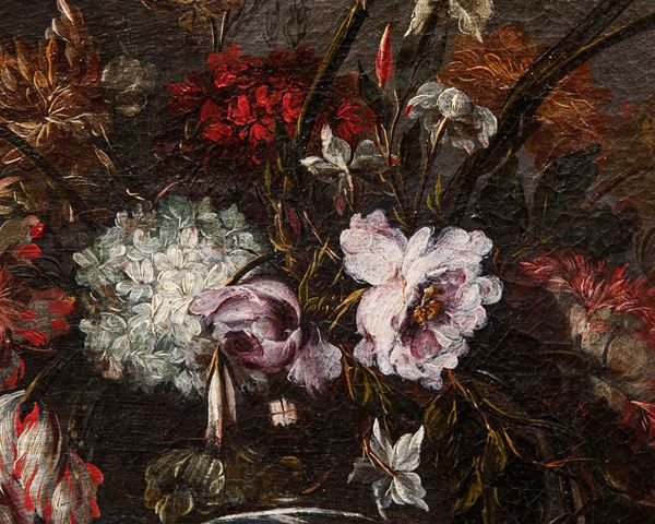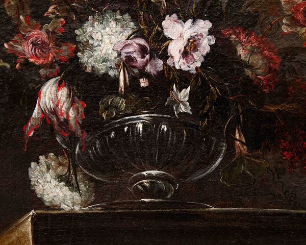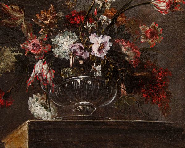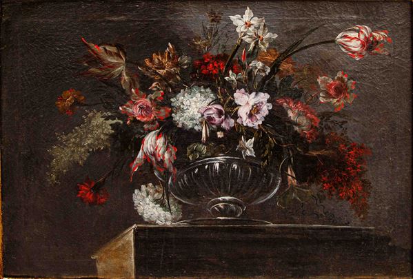 18TH CENTURY NEAPOLITAN SCHOOL. Oil painting on canvas depicting "STILL LIFE WITH VASE OF FLOWERS". Framed. Already relined and re-stretched.