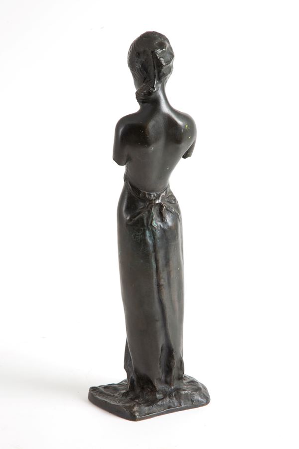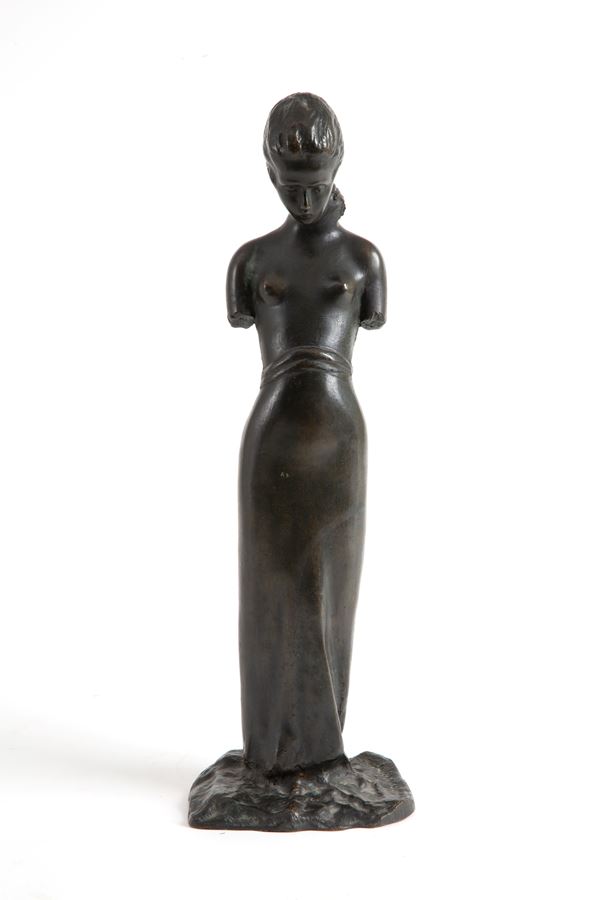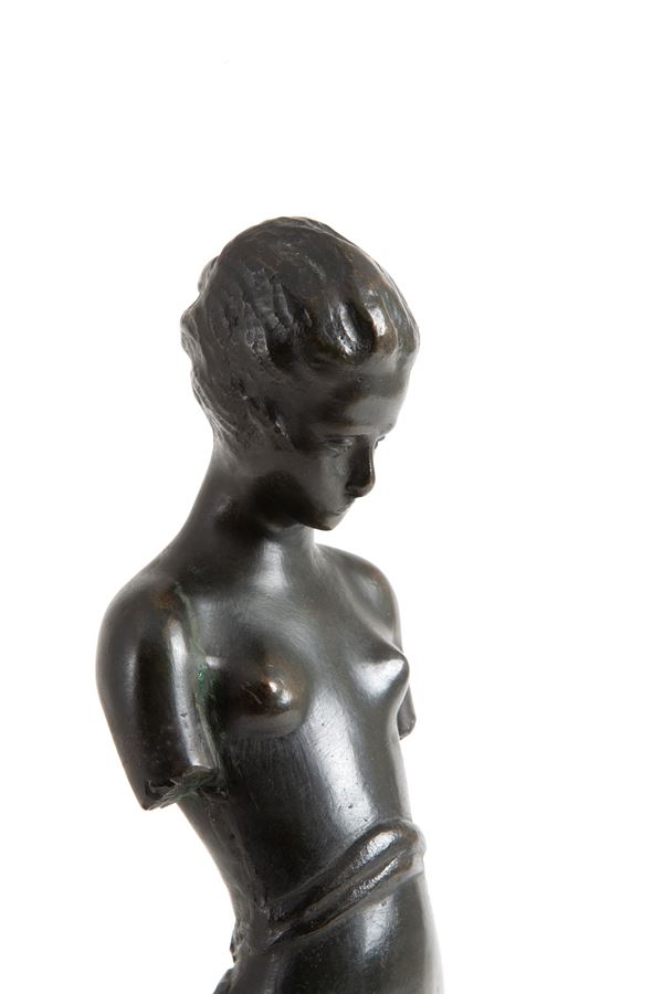 Bronze sculpture depicting "YOUNG GIRL". Signed at the base. Missing arms.