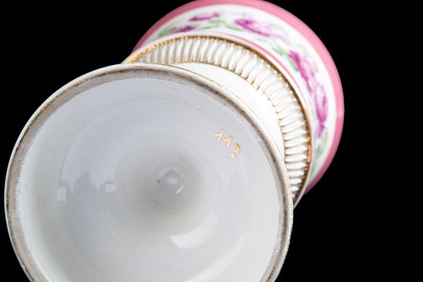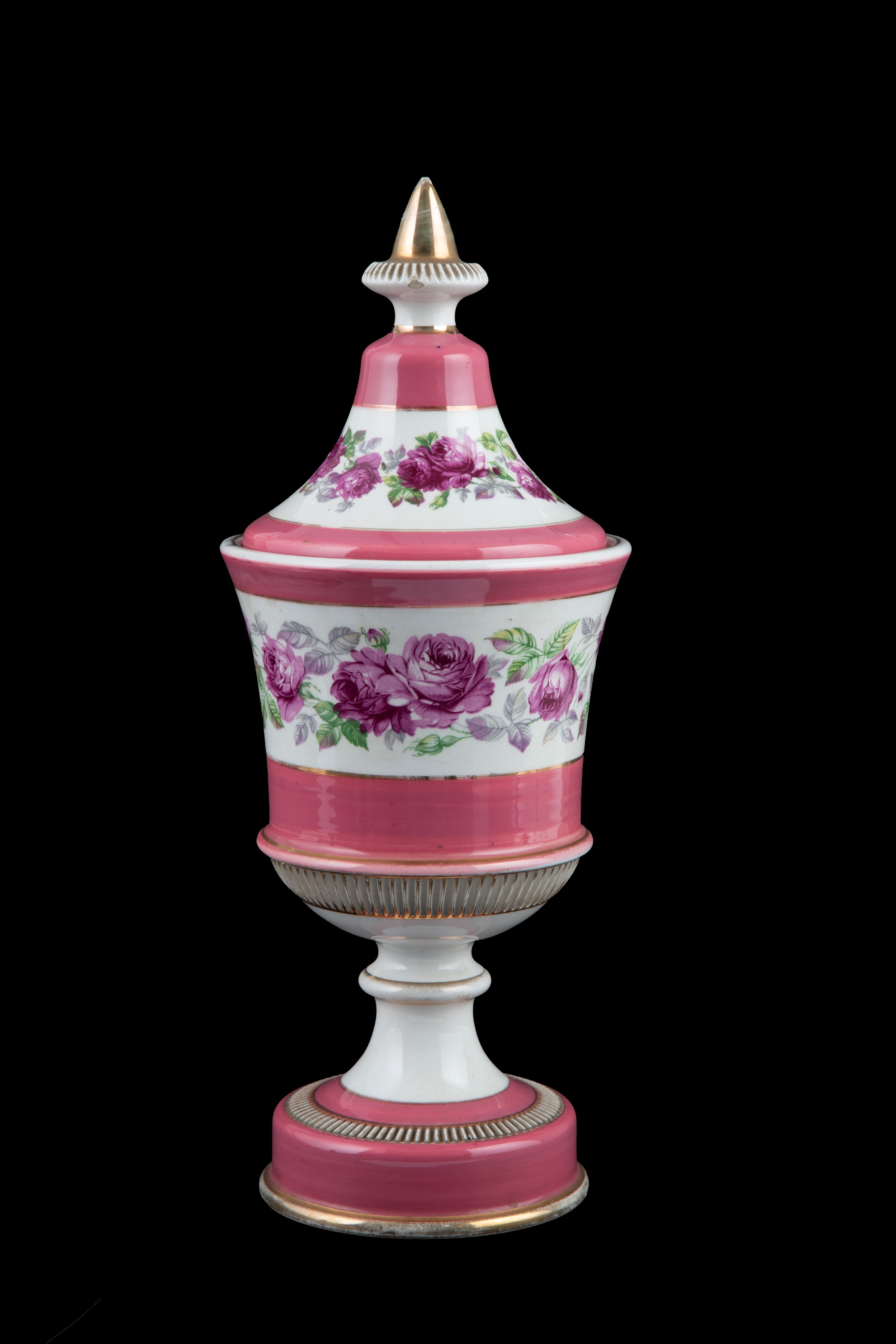 Ceramic vase with lid decorated with floral motifs. Late 19th century. Defects.