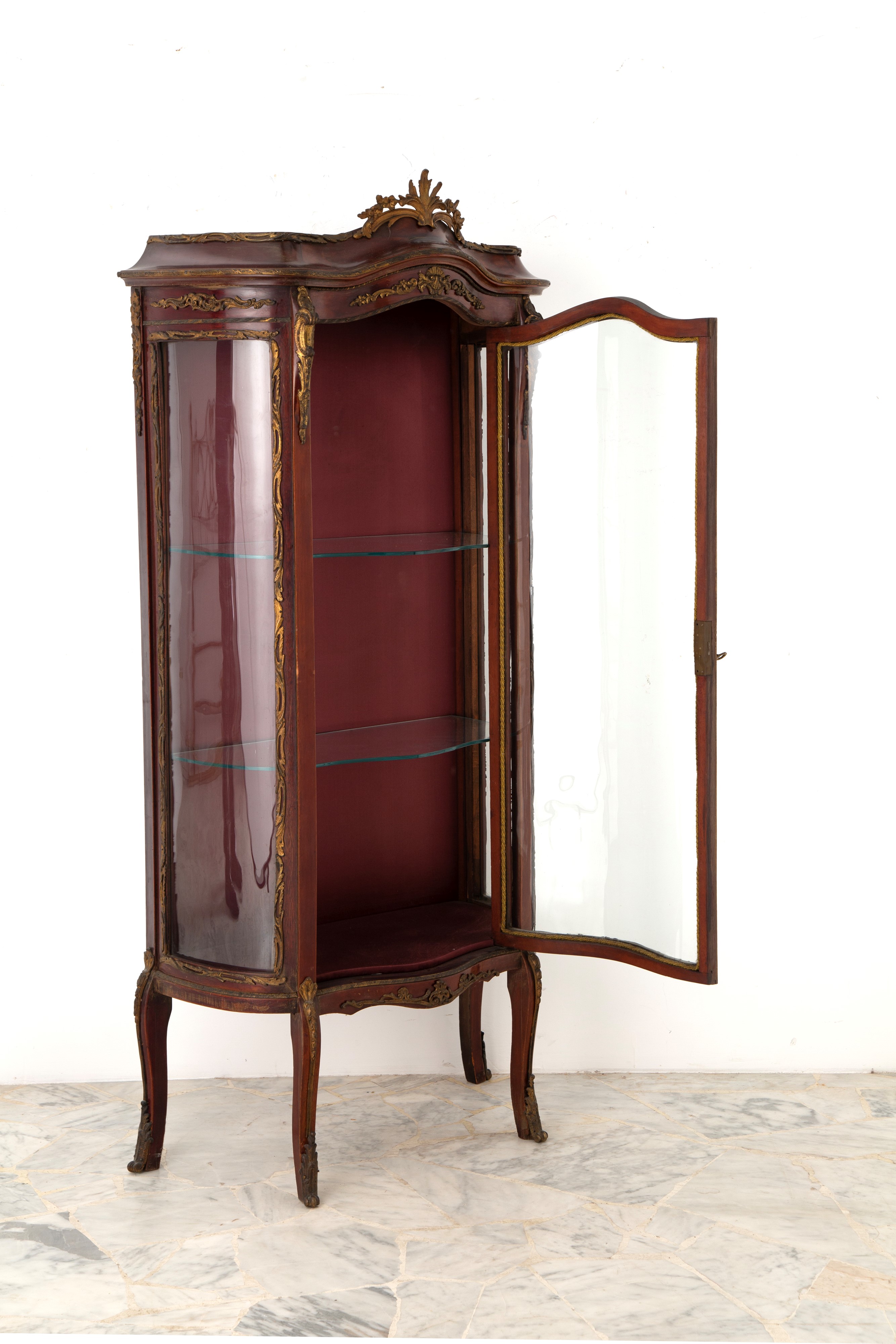 Curved display cabinet in stained wood with gilded bronze finishes. Napoleon III period. Minor defects.