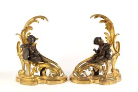 Decorative elements with gilded and patinated bronze sculptures depicting "ALLEGORIES OF THE ARTS". 19th century.
