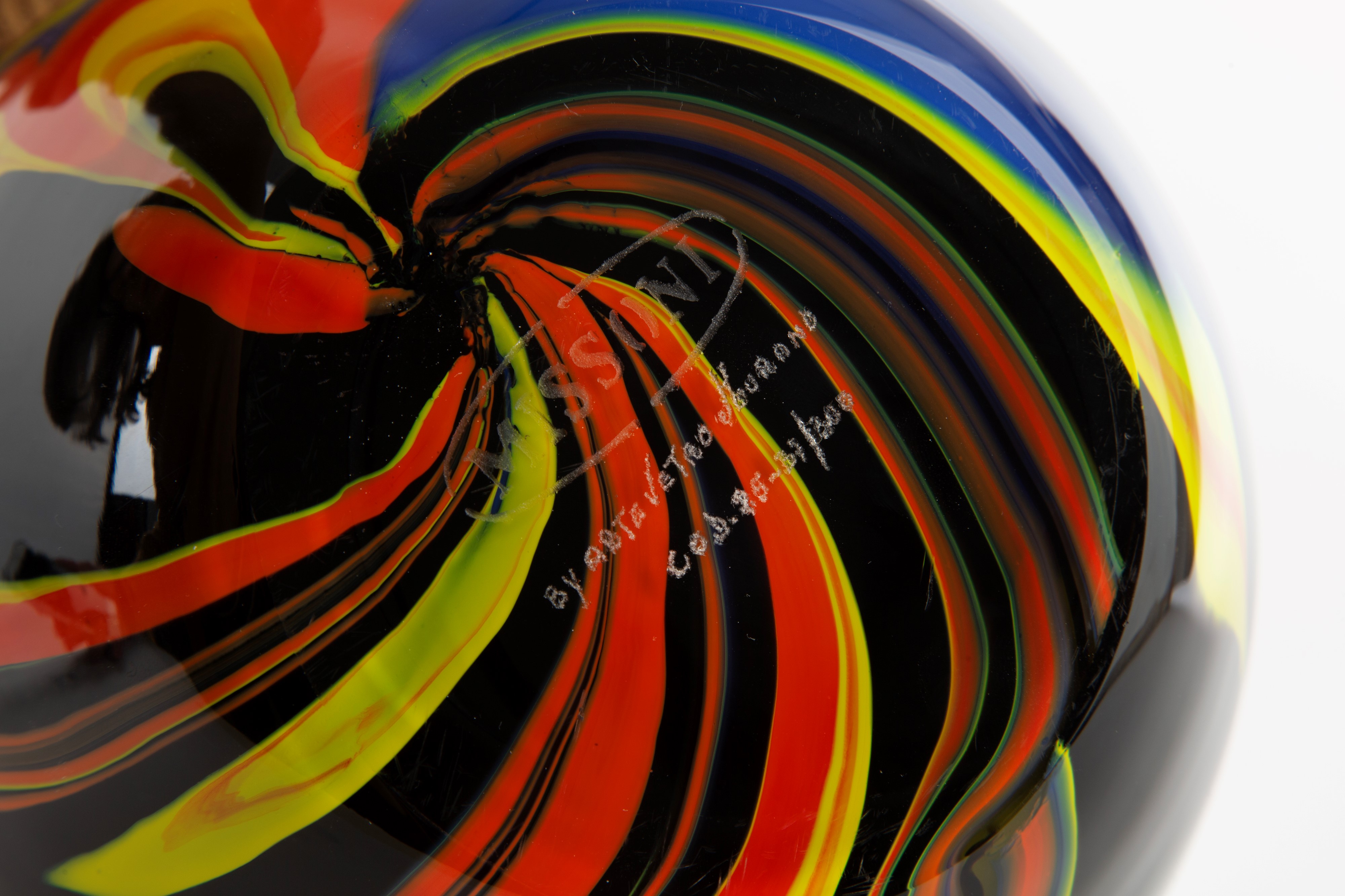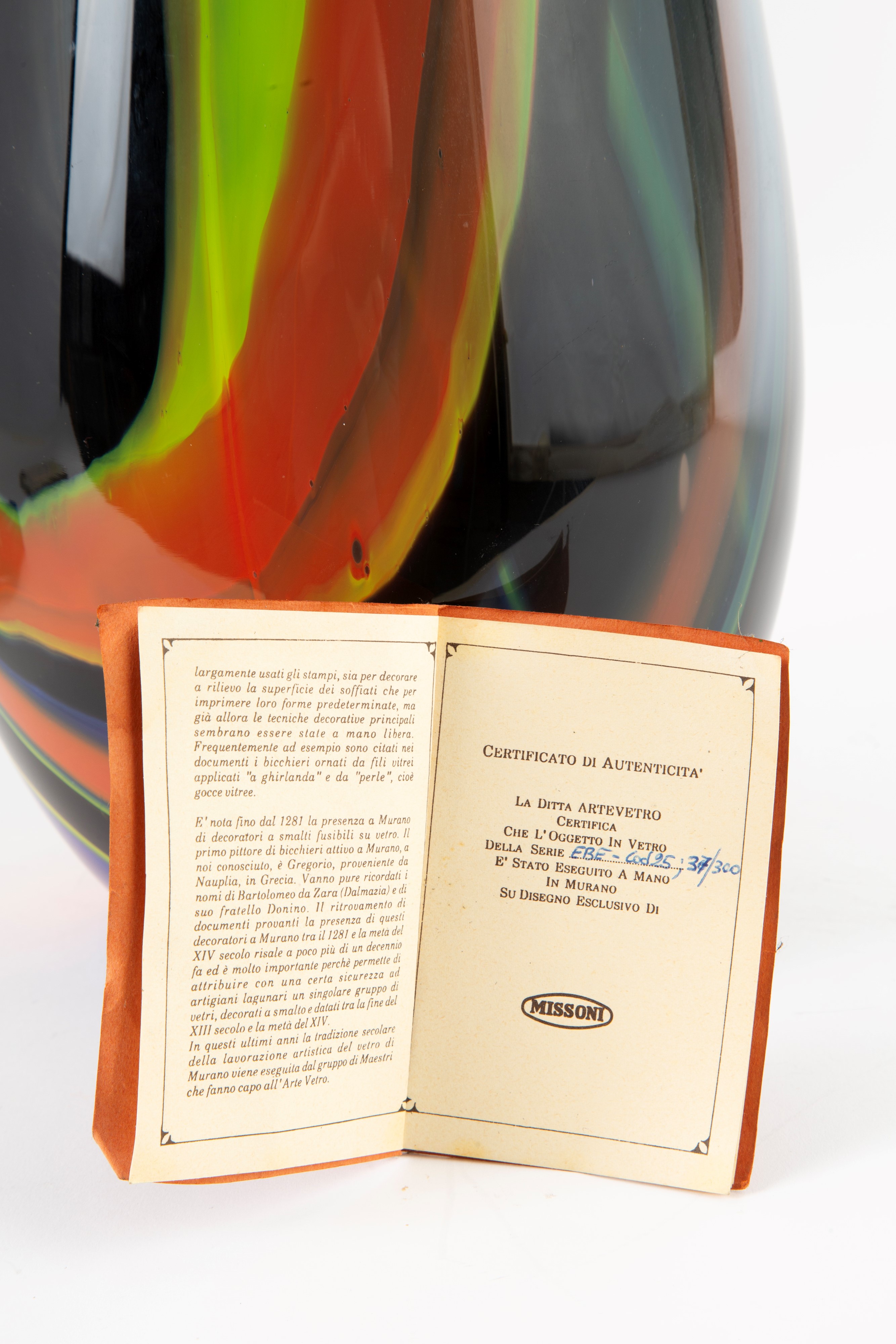 Colored and marbled Murano glass vase. Produced by Arte Vetro Murano for MISSONI. Signature and hallmark on the bottom. Piece number 37/300. With certificate of authenticity.
