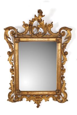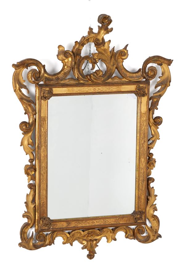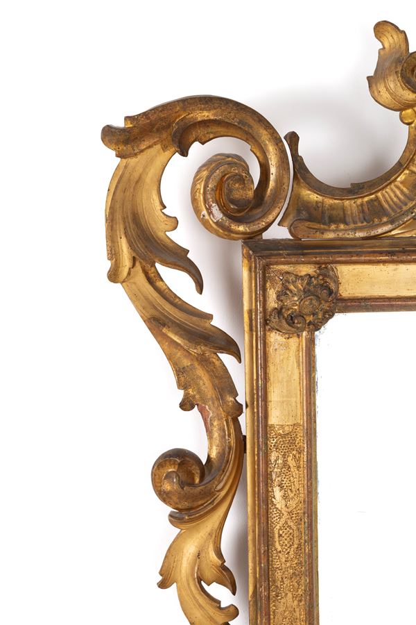 Carved and gilded wooden mirror. 19th century. Minor defects.