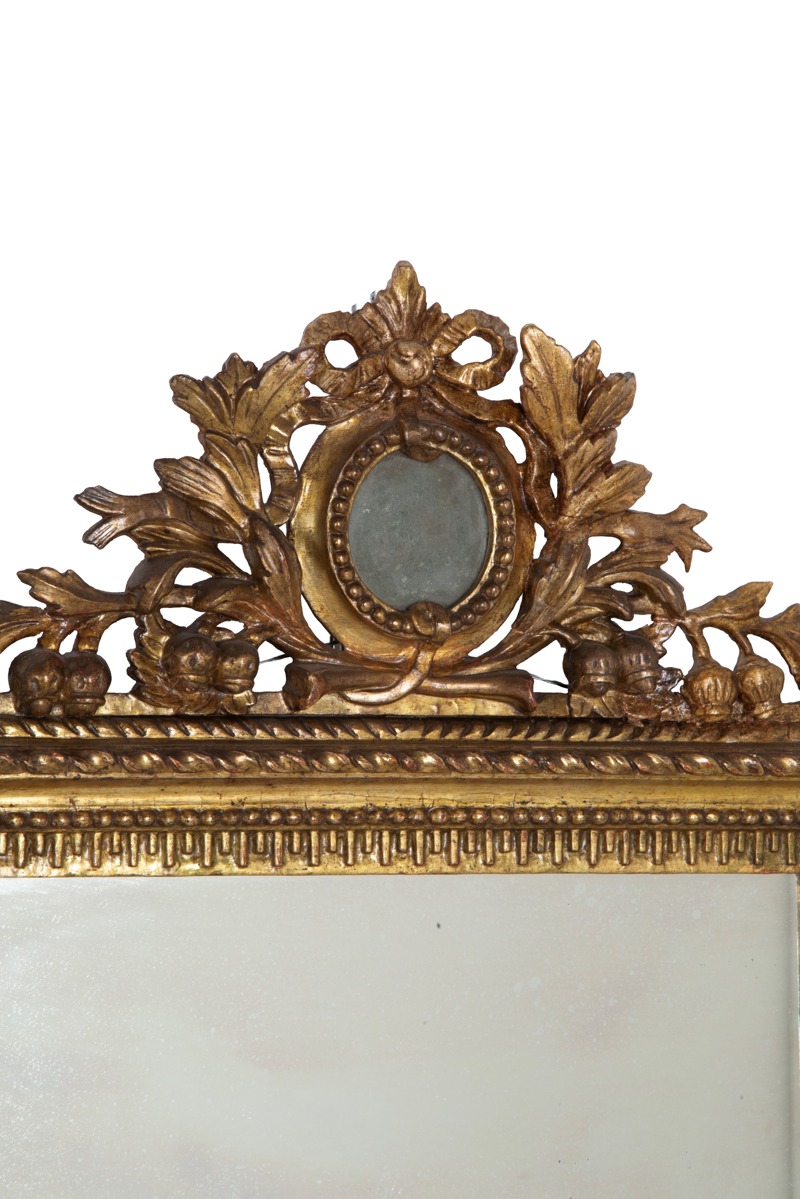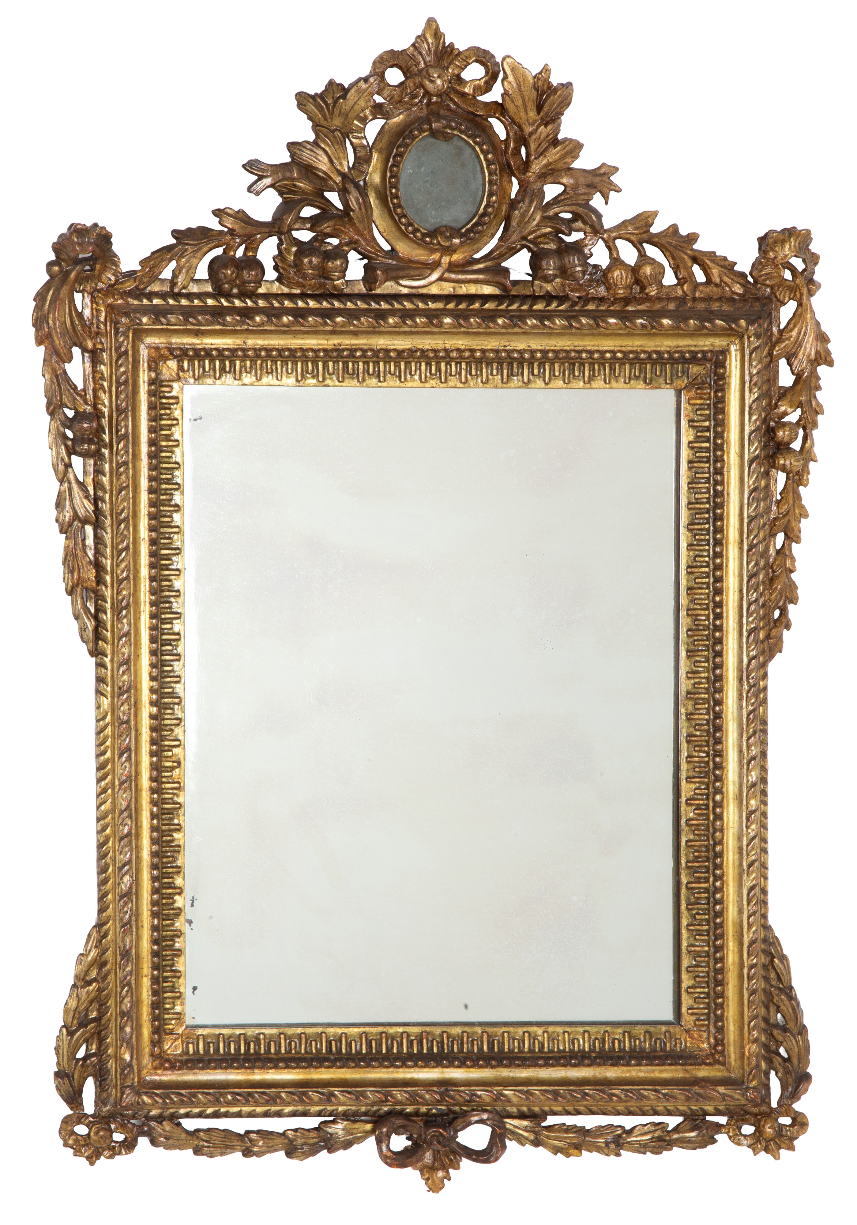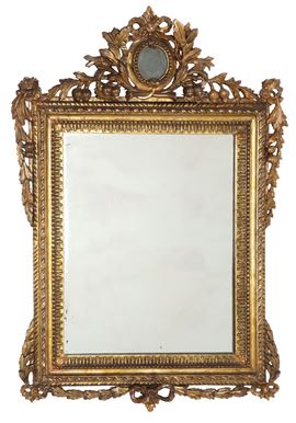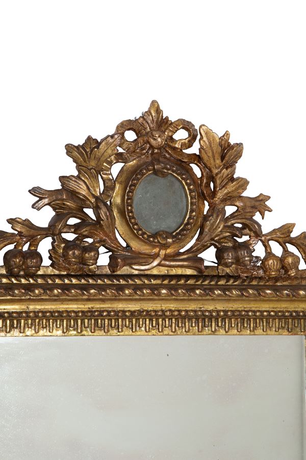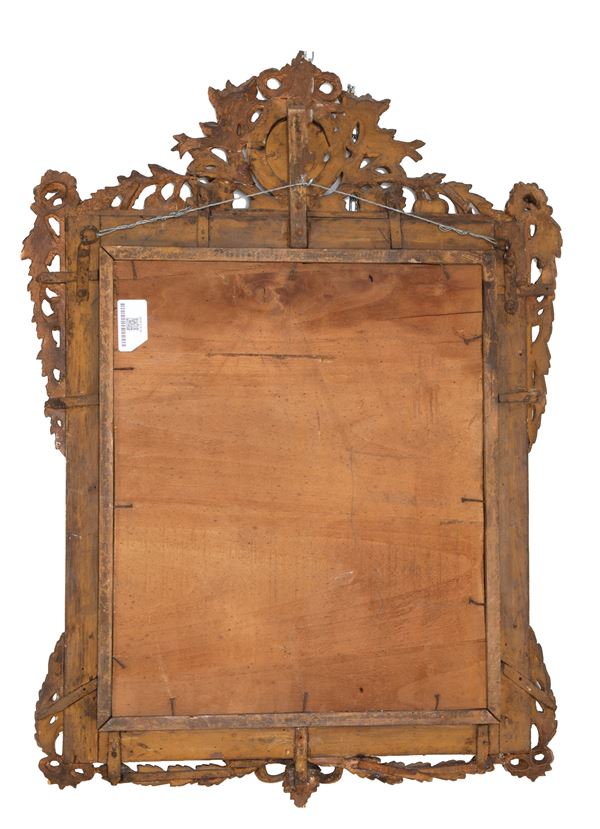 Carved and gilded wooden mirror. Late 18th century. Minor defects.