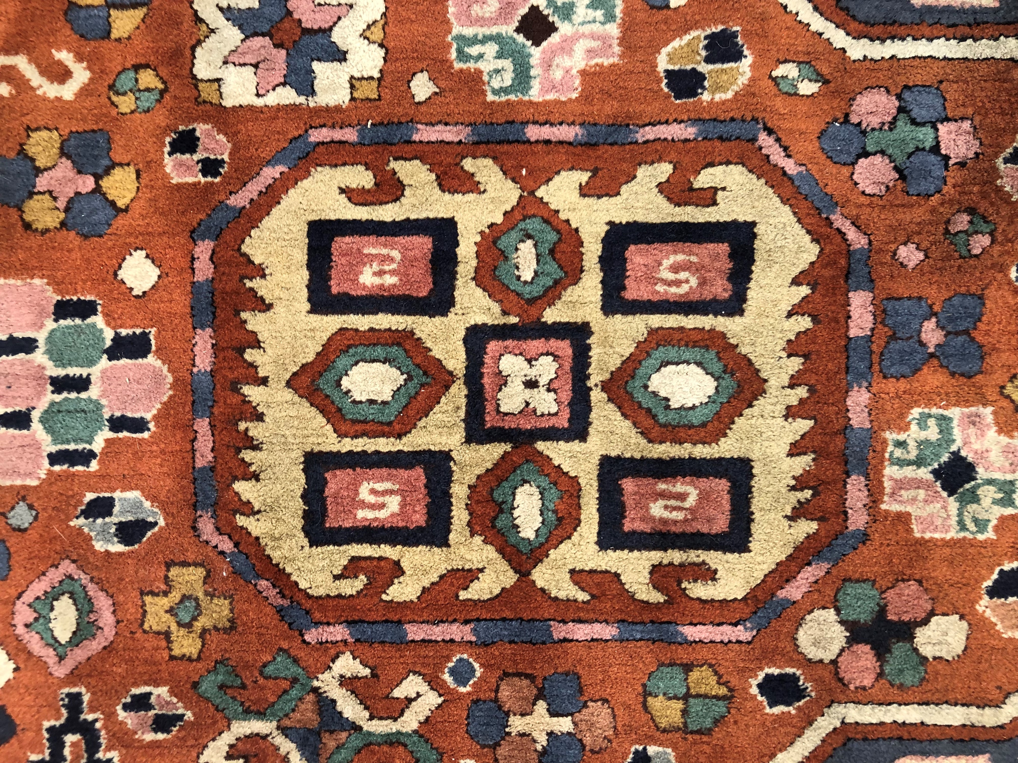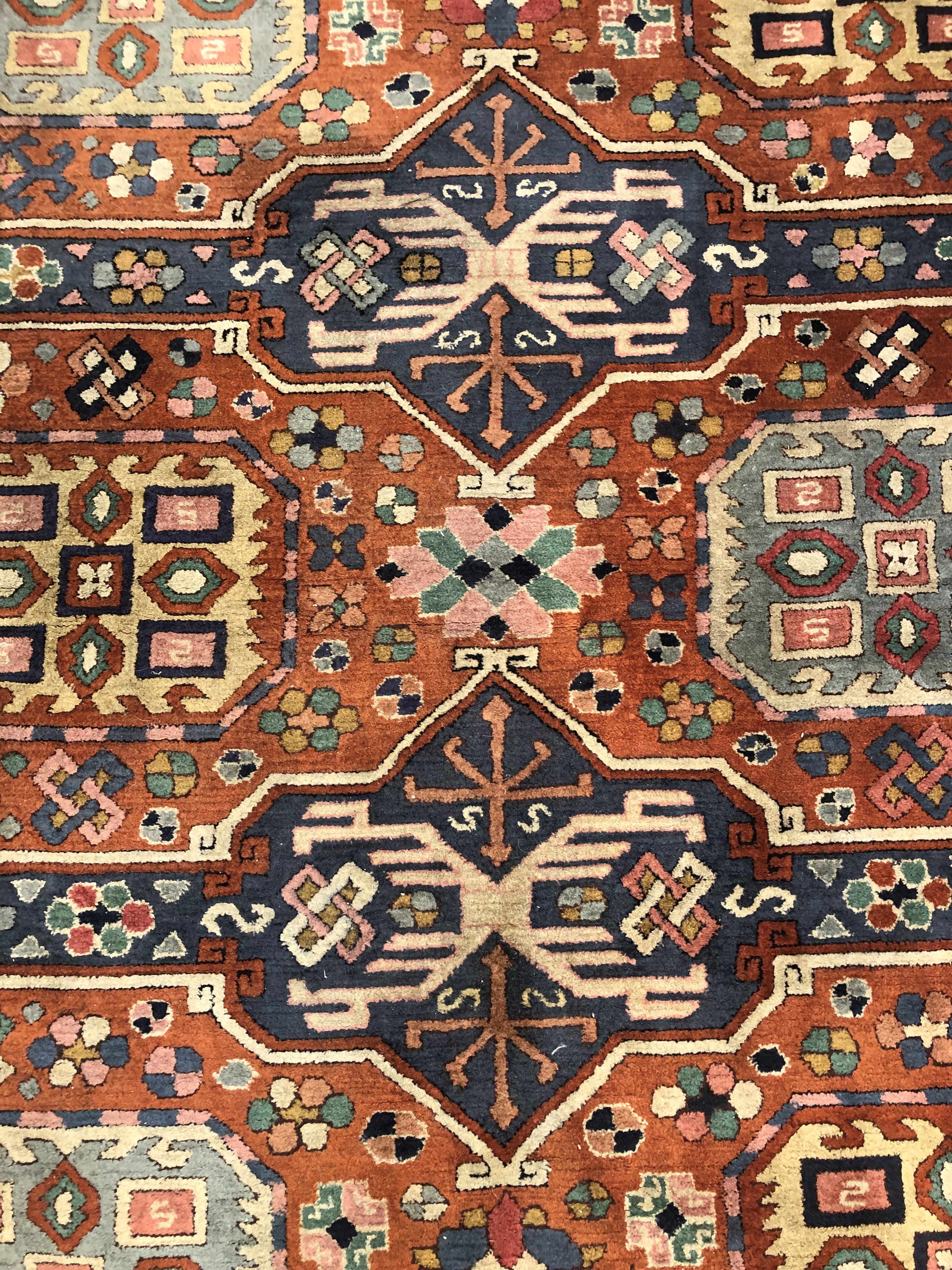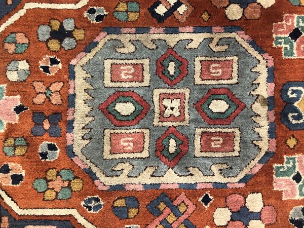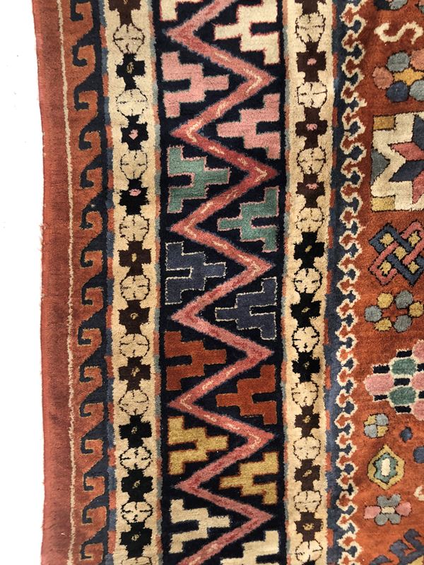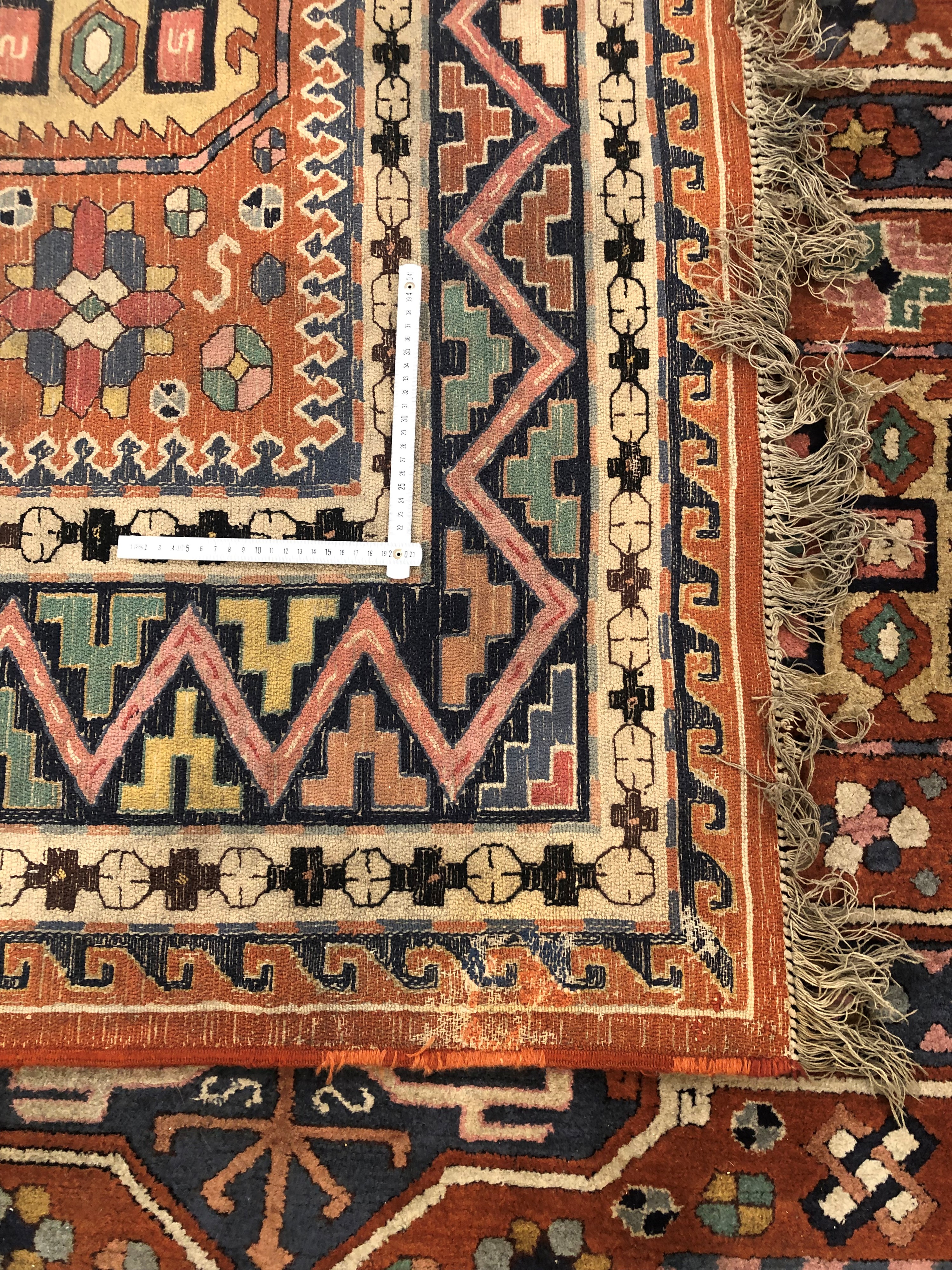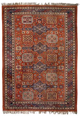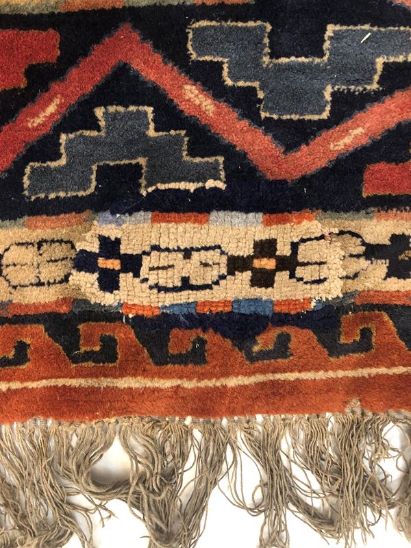 Hook rug. Probably German. Early 19th century. Excellent condition, pile field, minor old restorations.