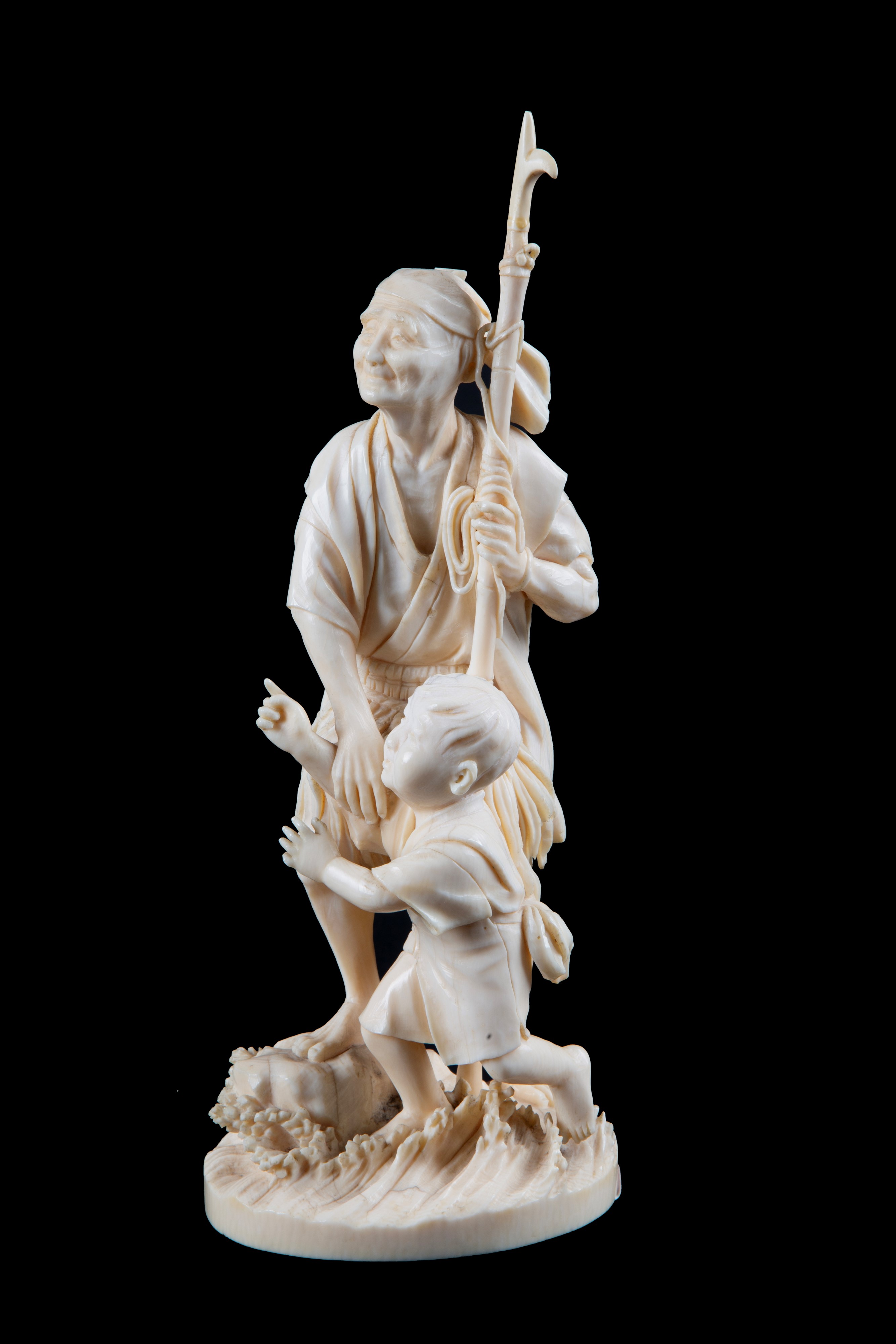 Ivory Okimono "FISHERMAN WITH CHILD"