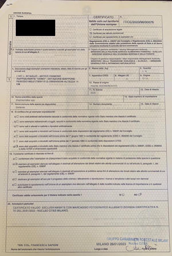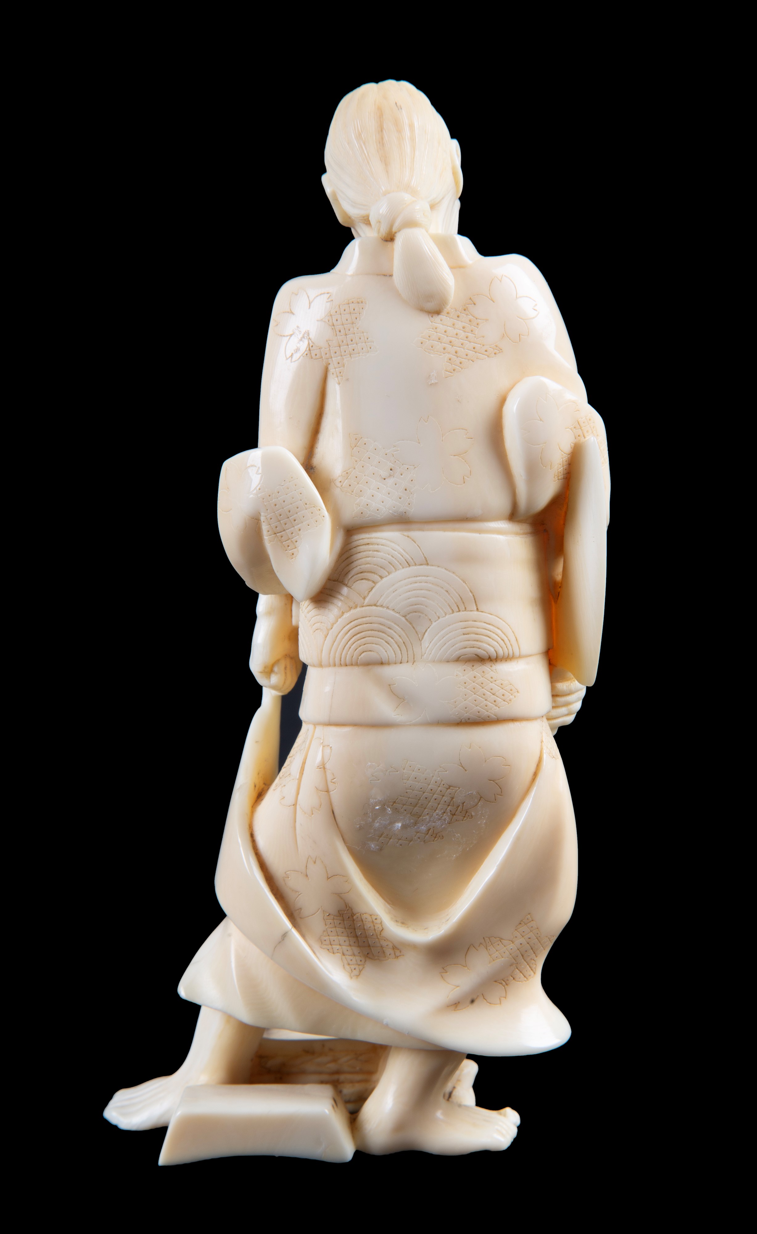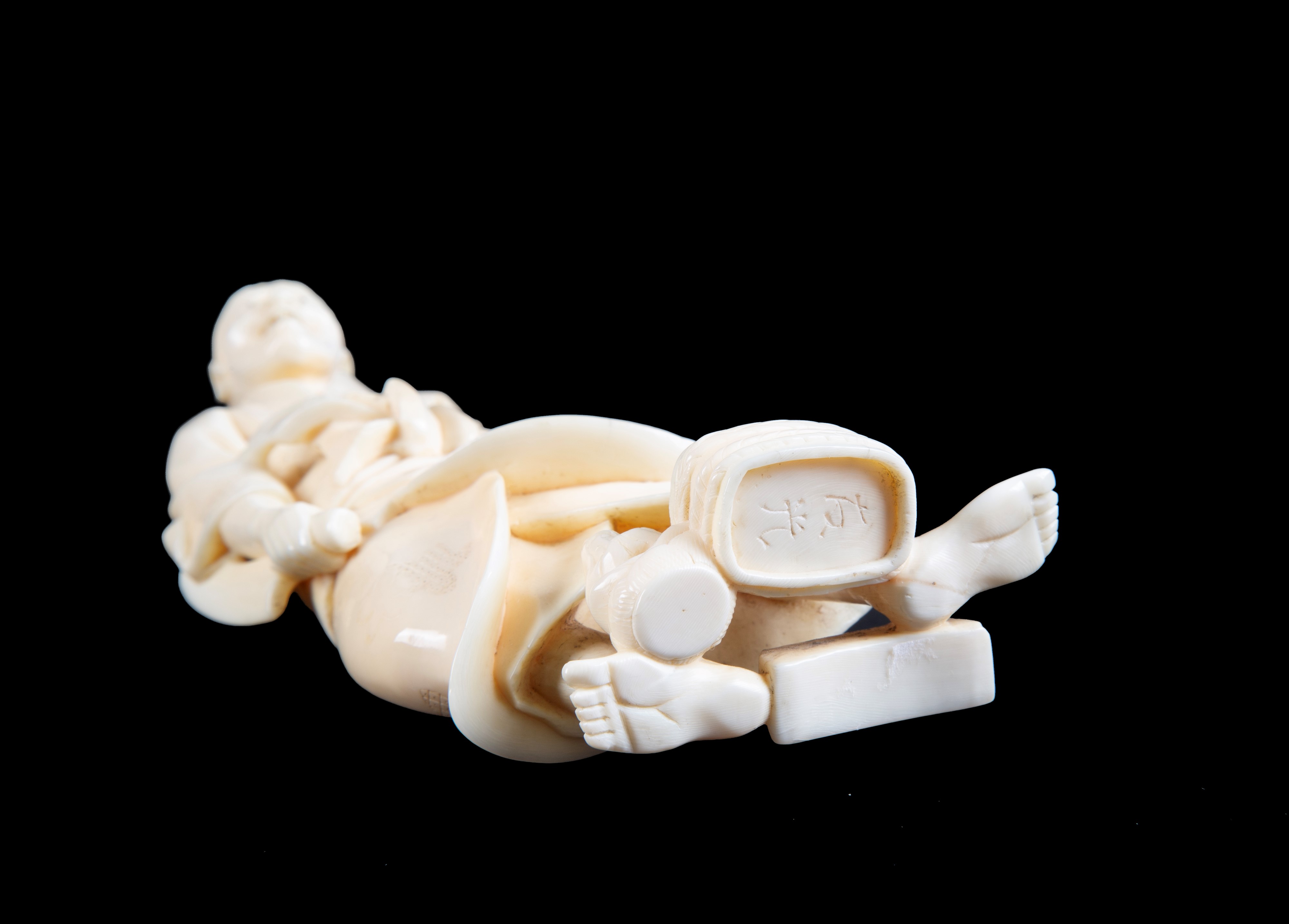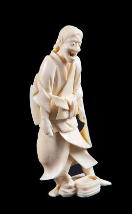 Ivory okimono depicting "MAN." Marked on the bottom. Japan. Meiji period. With CITES certificate.