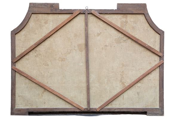 Oil painting on canvas depicting "SAINT FRANCIS XAVIER SUPPORTED BY ANGELS". Defects.