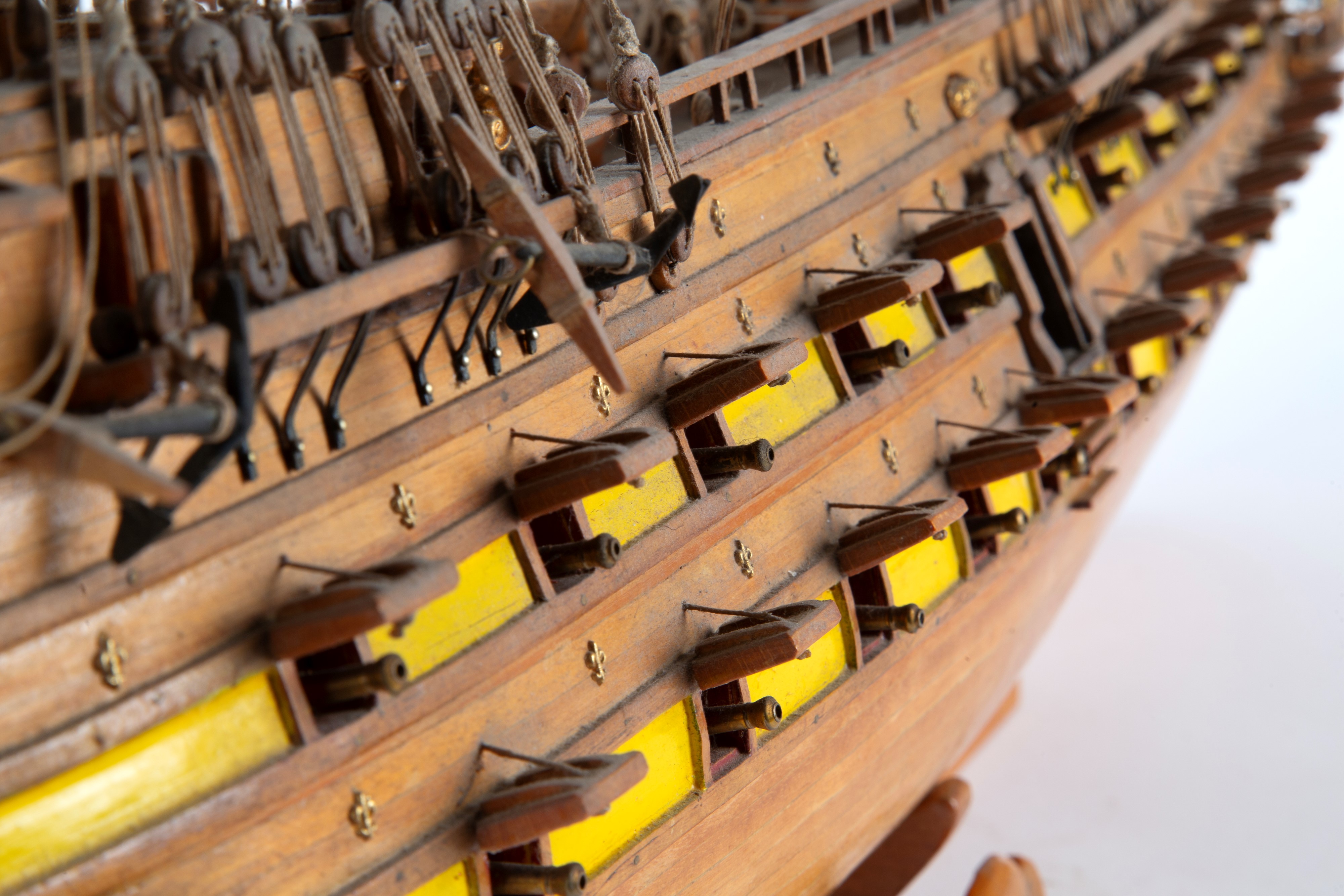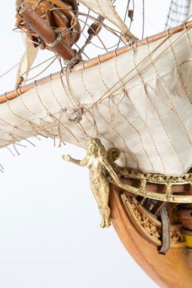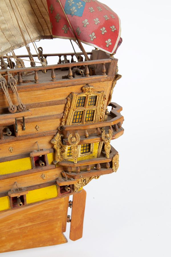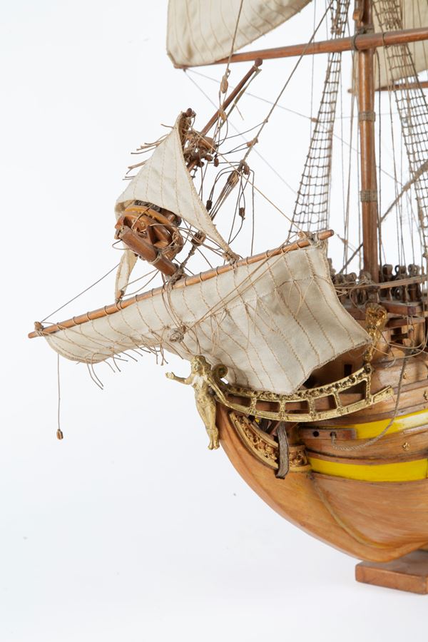 Wooden model of the Mirage warship. 20th century. Defects and missing parts.
