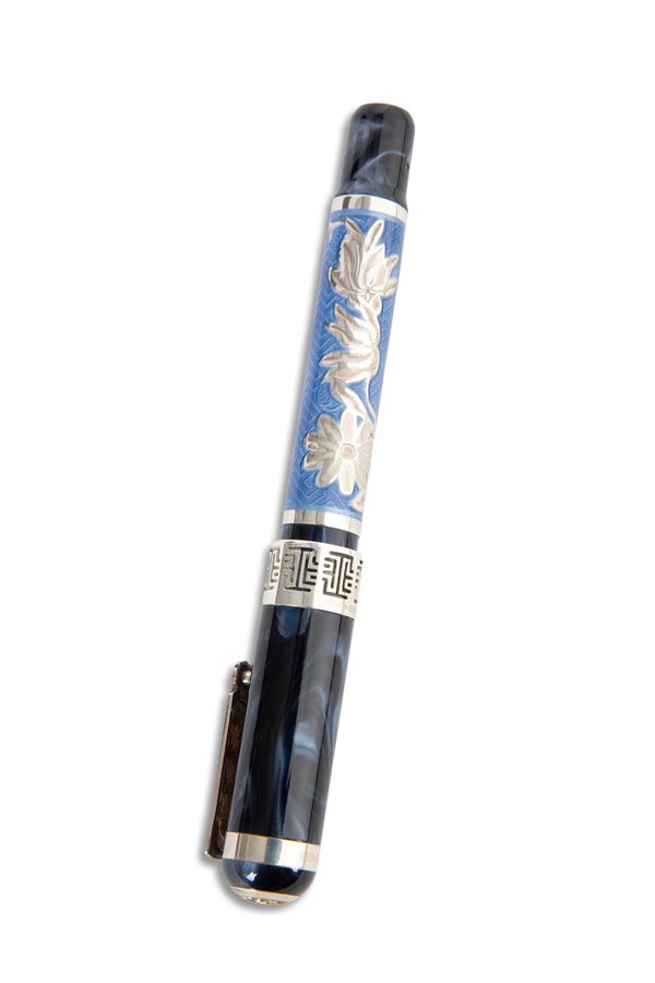 Montegrappa Science & Nature silver fountain pen. 1999. With original case and box.