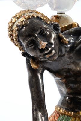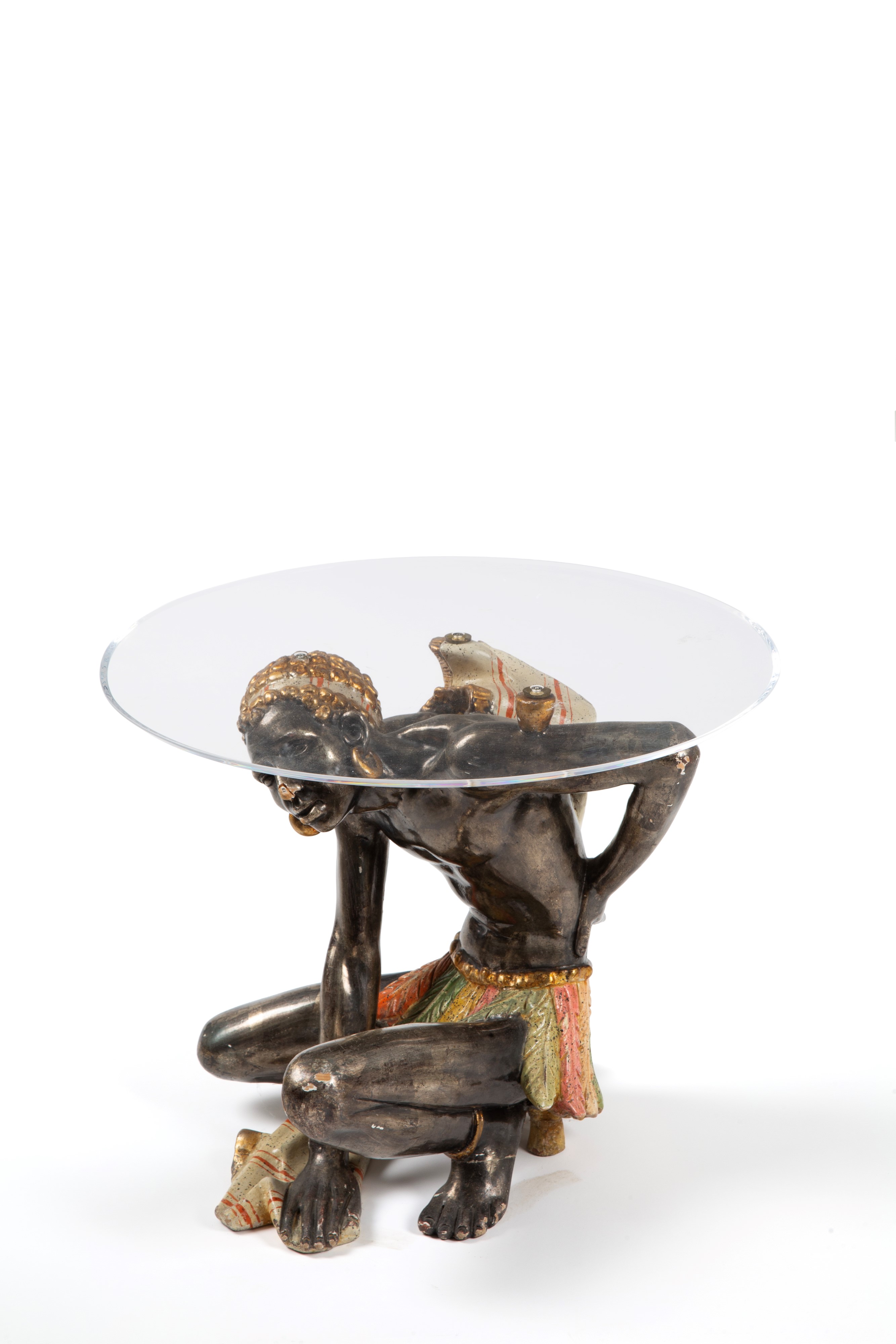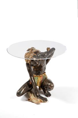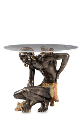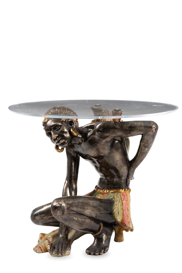 Moorish lacquered wood table with plexiglass top. 20th century. Defects.