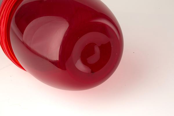 Red Murano glass vase with appliques. 20th century.