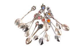 One hundred and ten collectible teaspoons of various materials, shapes, and nationalities. Early 20th century.
