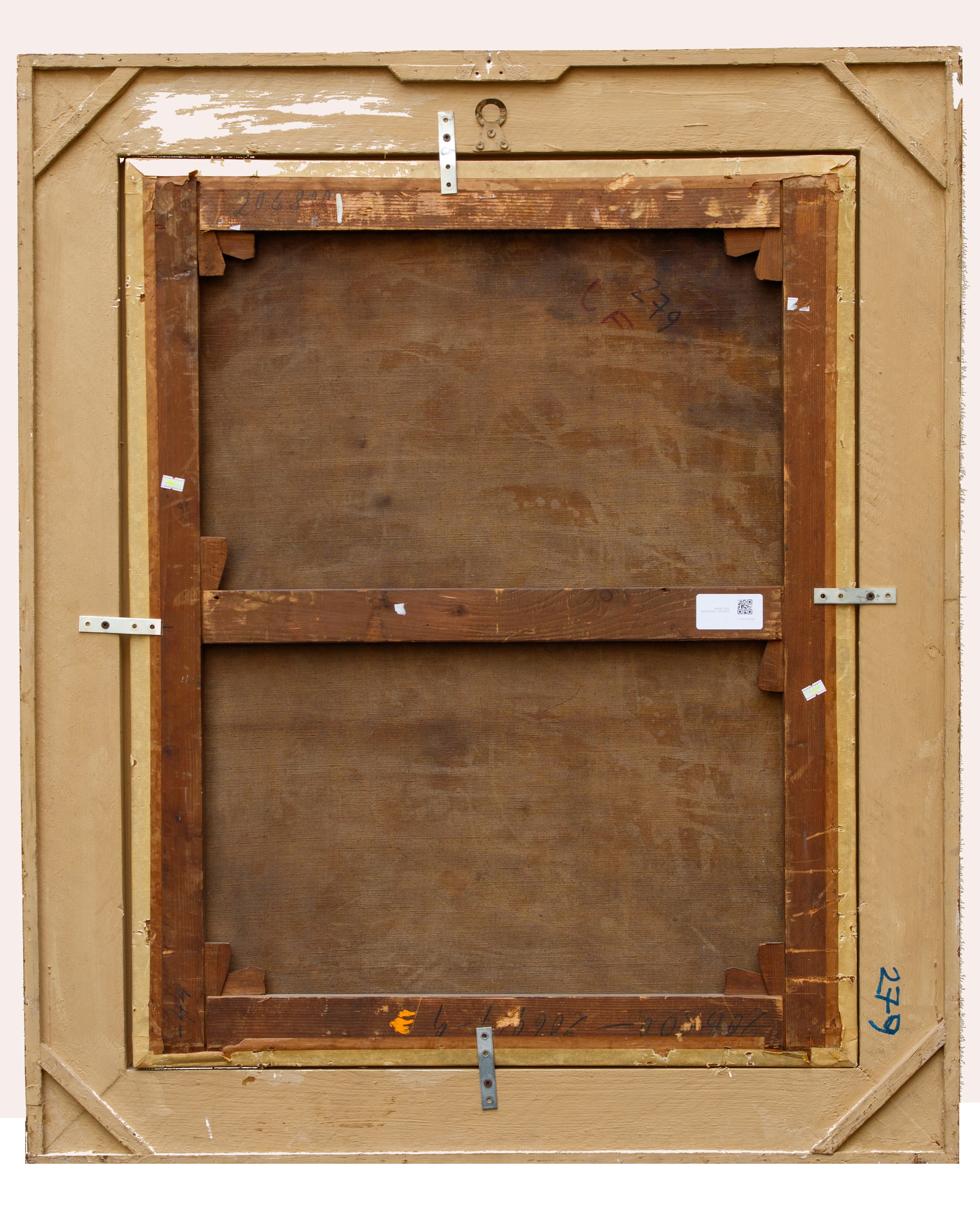 17th-CENTURY NEAPOLITAN SCHOOL. Oil painting on canvas depicting "FARMER WITH HOE." Framed in carved and gilded wood. Already relined and re-stretched.