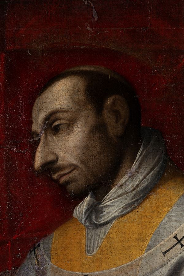 Oil painting on canvas depicting "SAINT CHARLES BORROMEO". 17th century. Defects. Already relined and restretched.