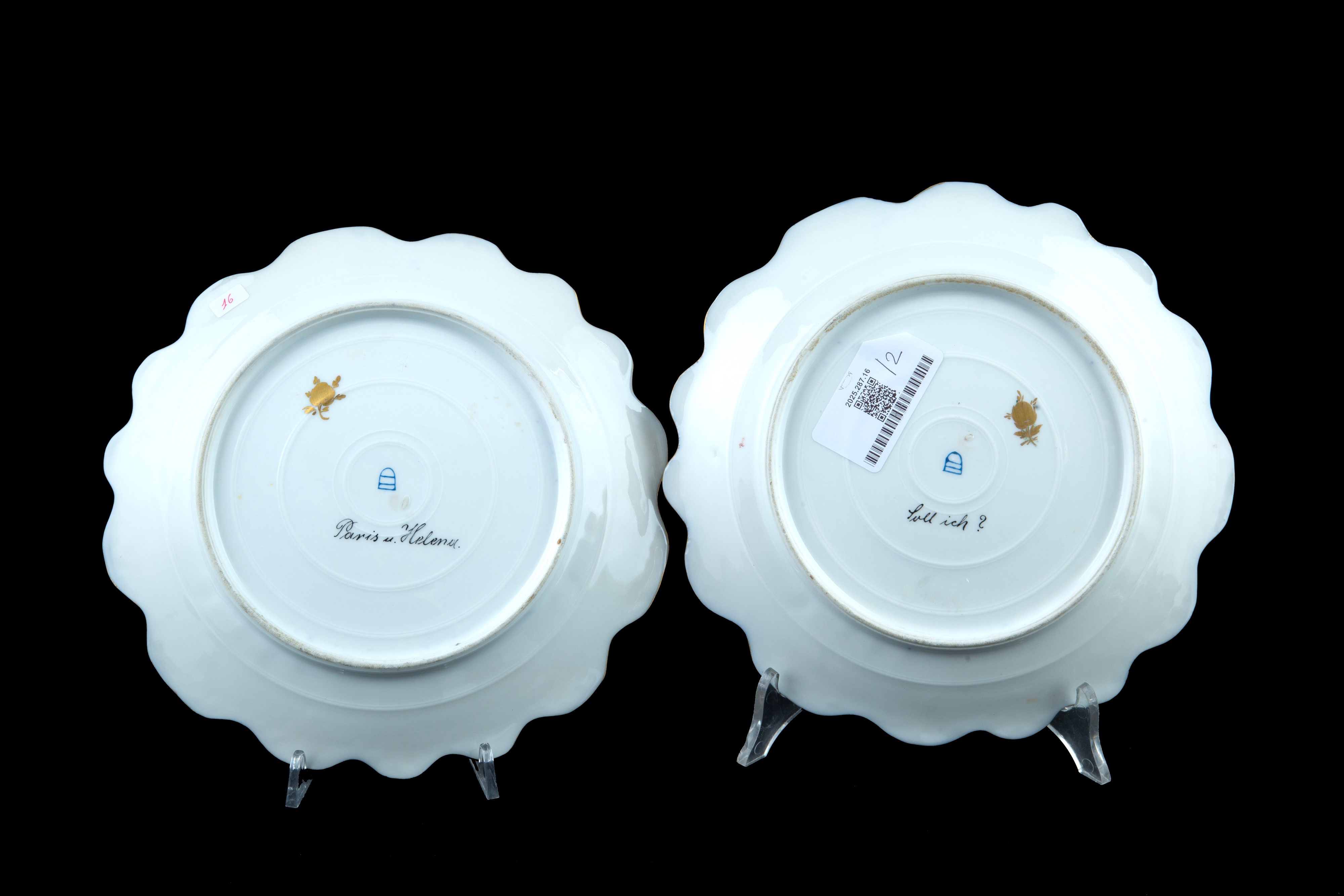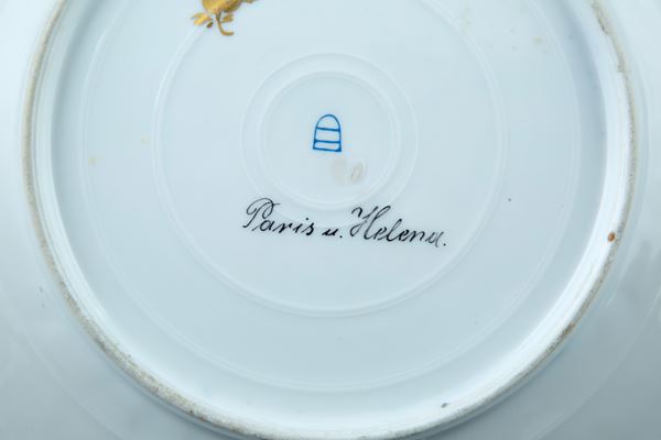 Pair of porcelain plates depicting "PARIS AND HELEN" and "VENUS AND CUPID". Marked on the back. Vienna. Late 19th century.