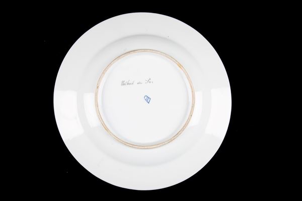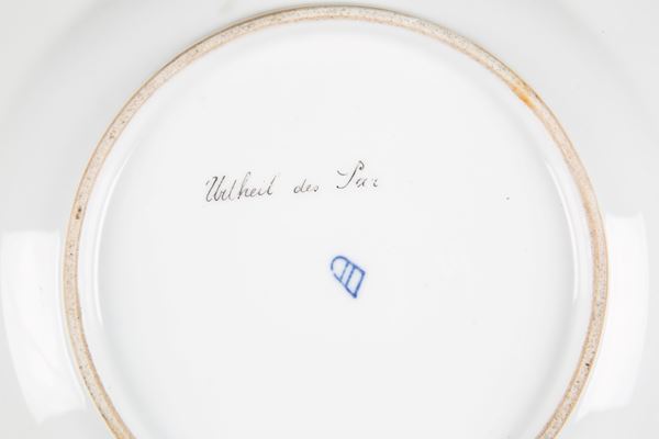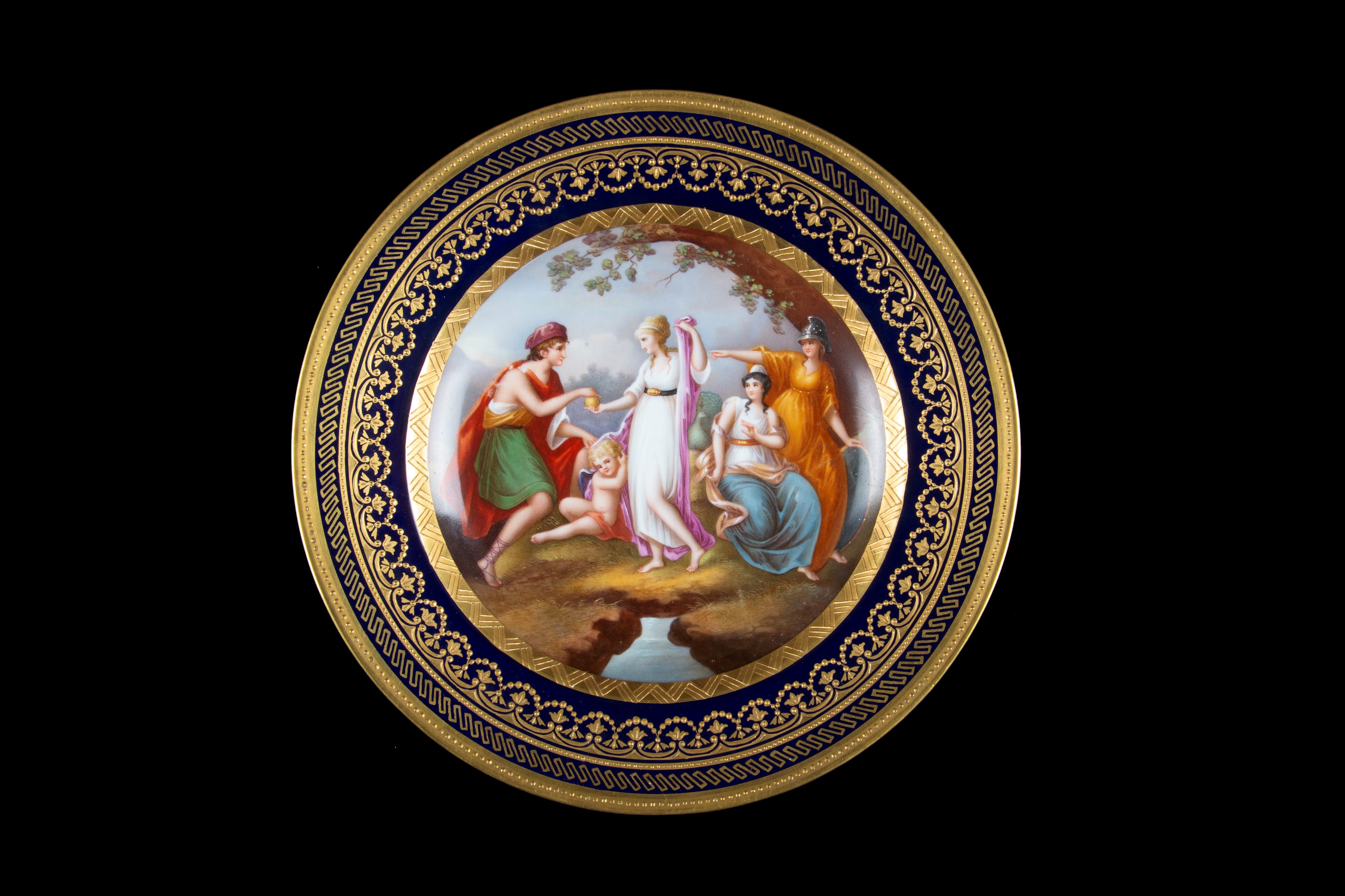 Porcelain plate depicting "THE JUDGMENT OF PARIS." Marked on the back. Vienna. Late 19th century.