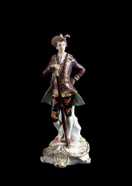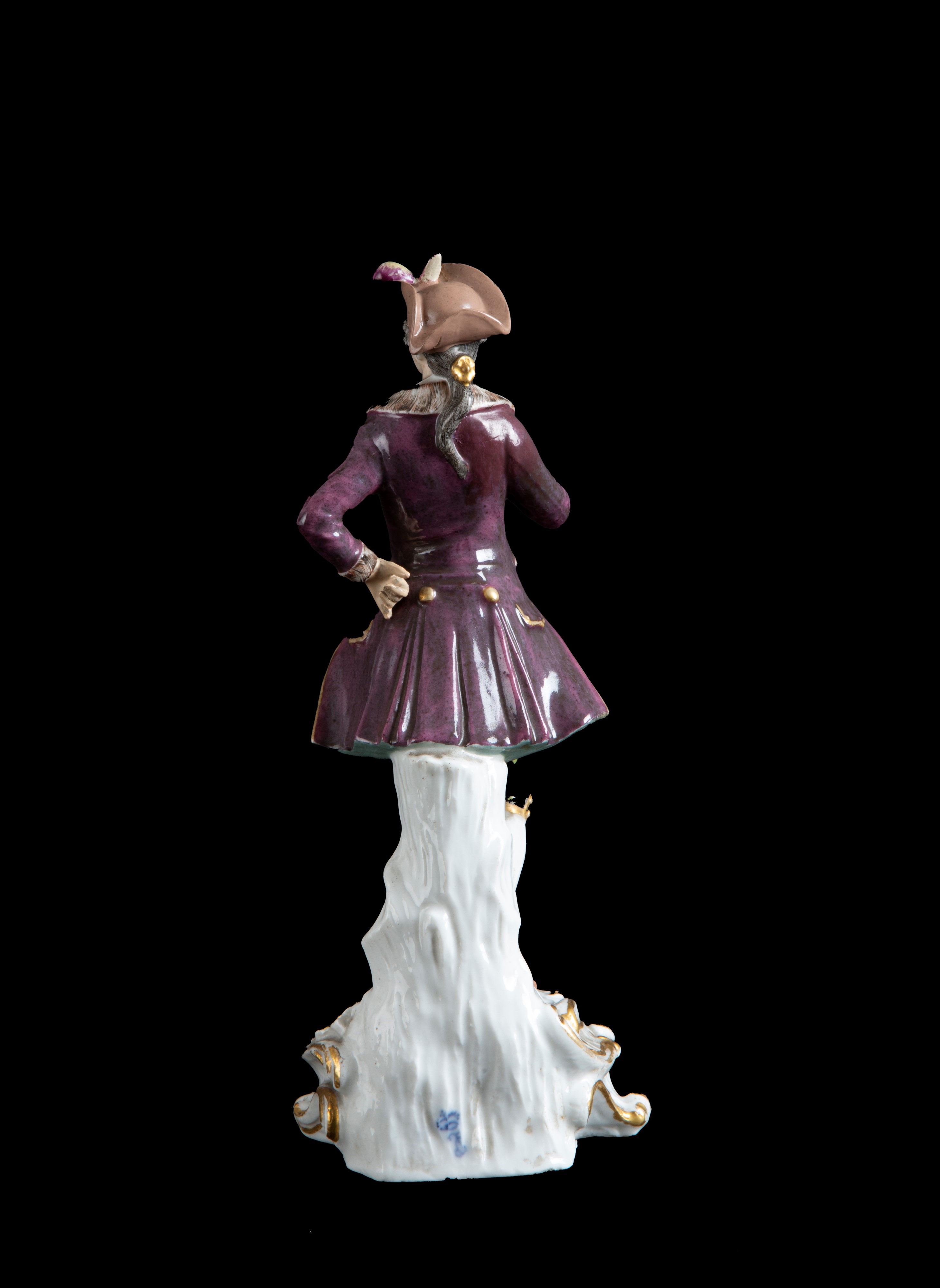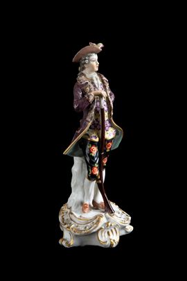 Polychrome porcelain sculpture depicting a "GENTLEMAN". 19th century. SITZENDORF manufacture, Thuringia. Marked on the back. Restored.