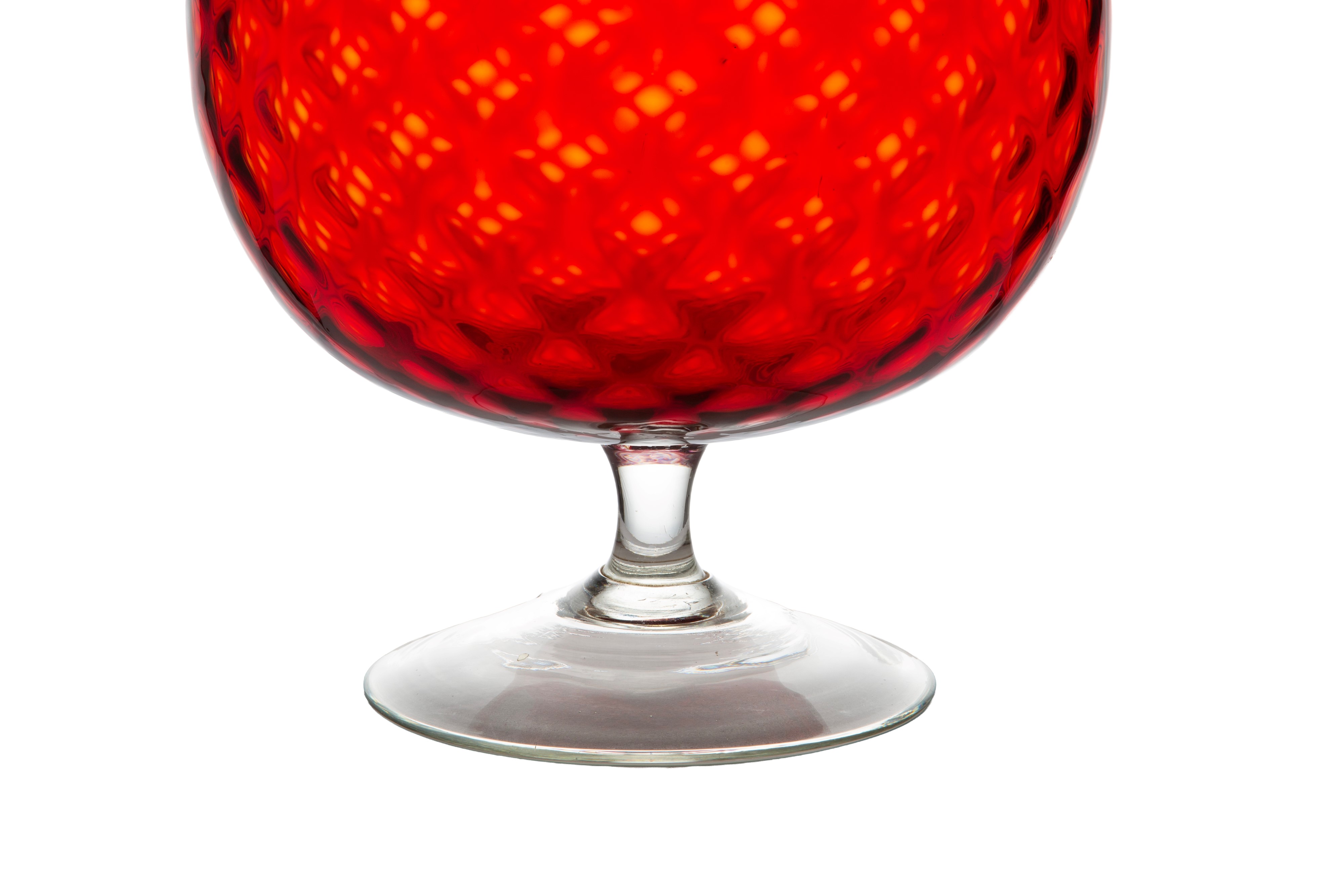 Red glass vase with a clear base. 20th century.