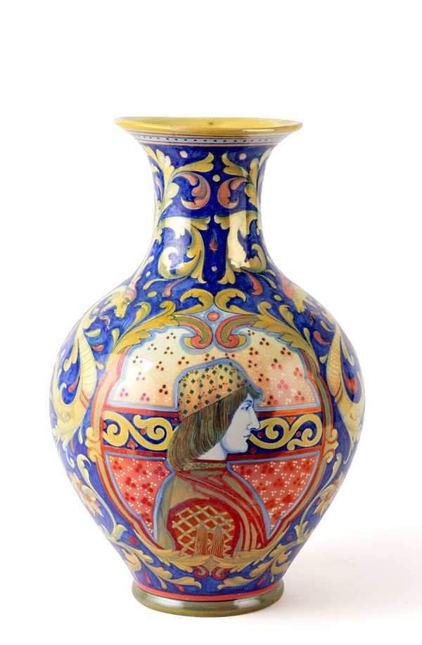 Lustre ceramic vase. Signed on the bottom. GUALDO TADINO manufacture. Early 20th century. Slight chip on the rim.