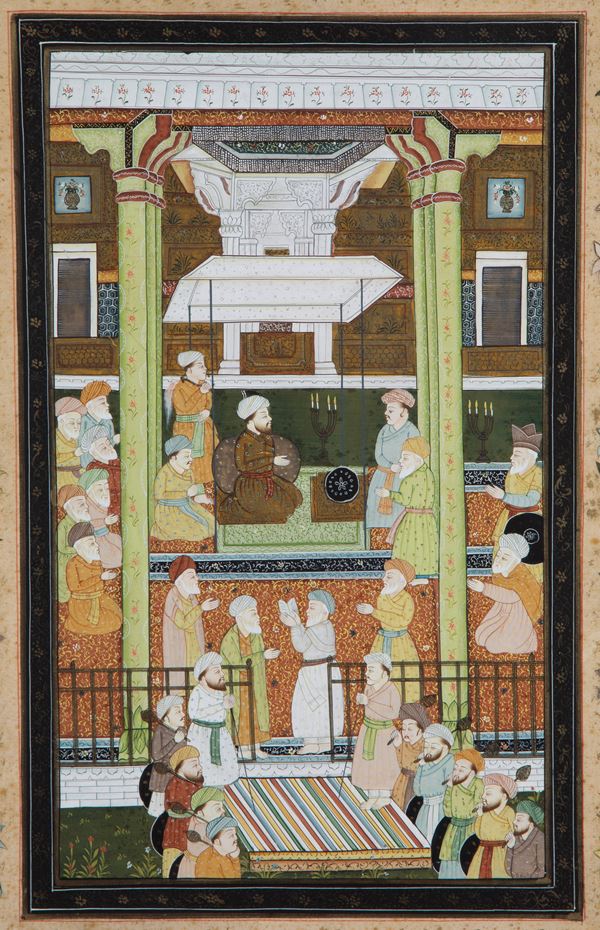 Tempera on silk depicting "SCENES OF ORIENTAL LIFE". 19th century. Framed.