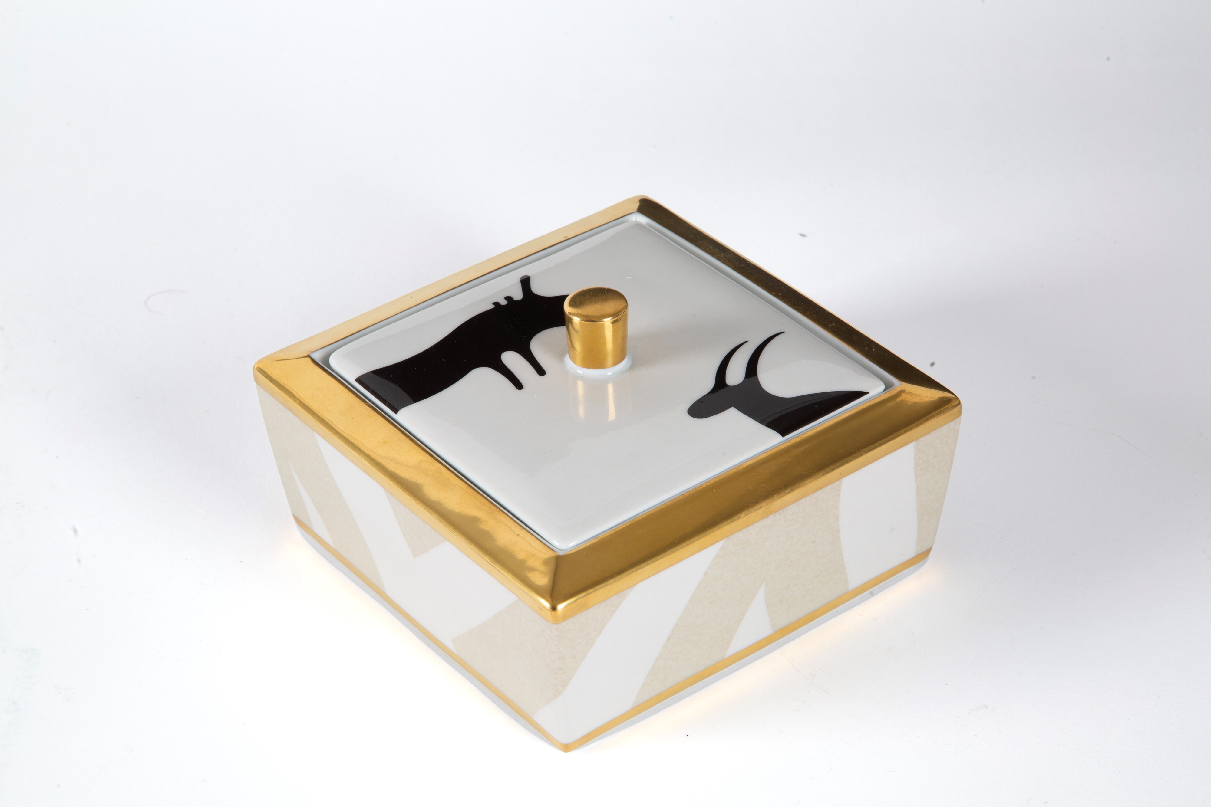 Porcelain jewelry box, Pascolo Rupestre series. Made by ROSENTHAL for BULGARI. Marked on the bottom. 20th century.