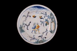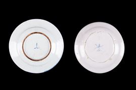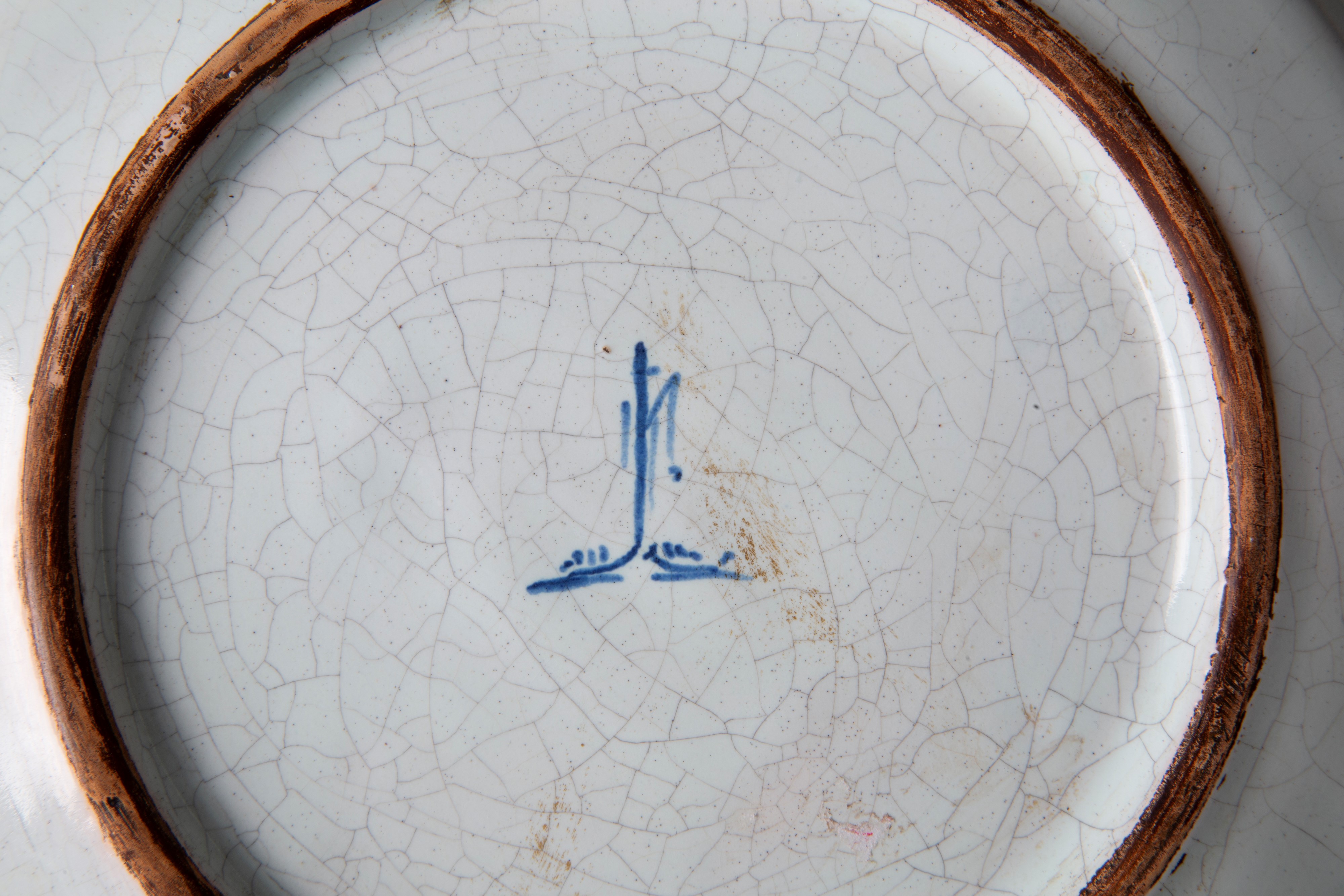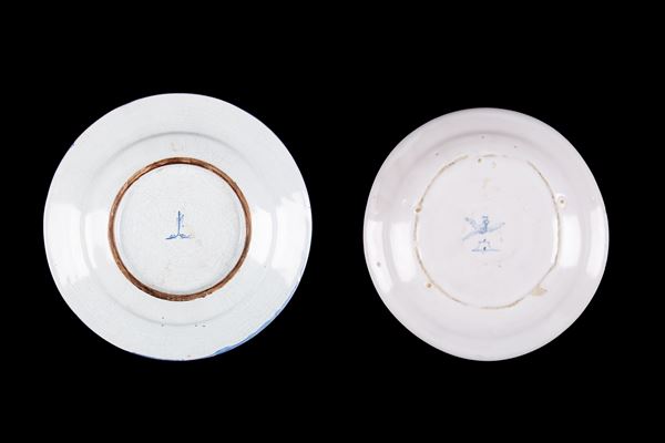 Two ceramic plates: a Levantino plate and a Guido Bono plate. Marked on the back. Savona. 18th century. Defects.
