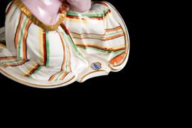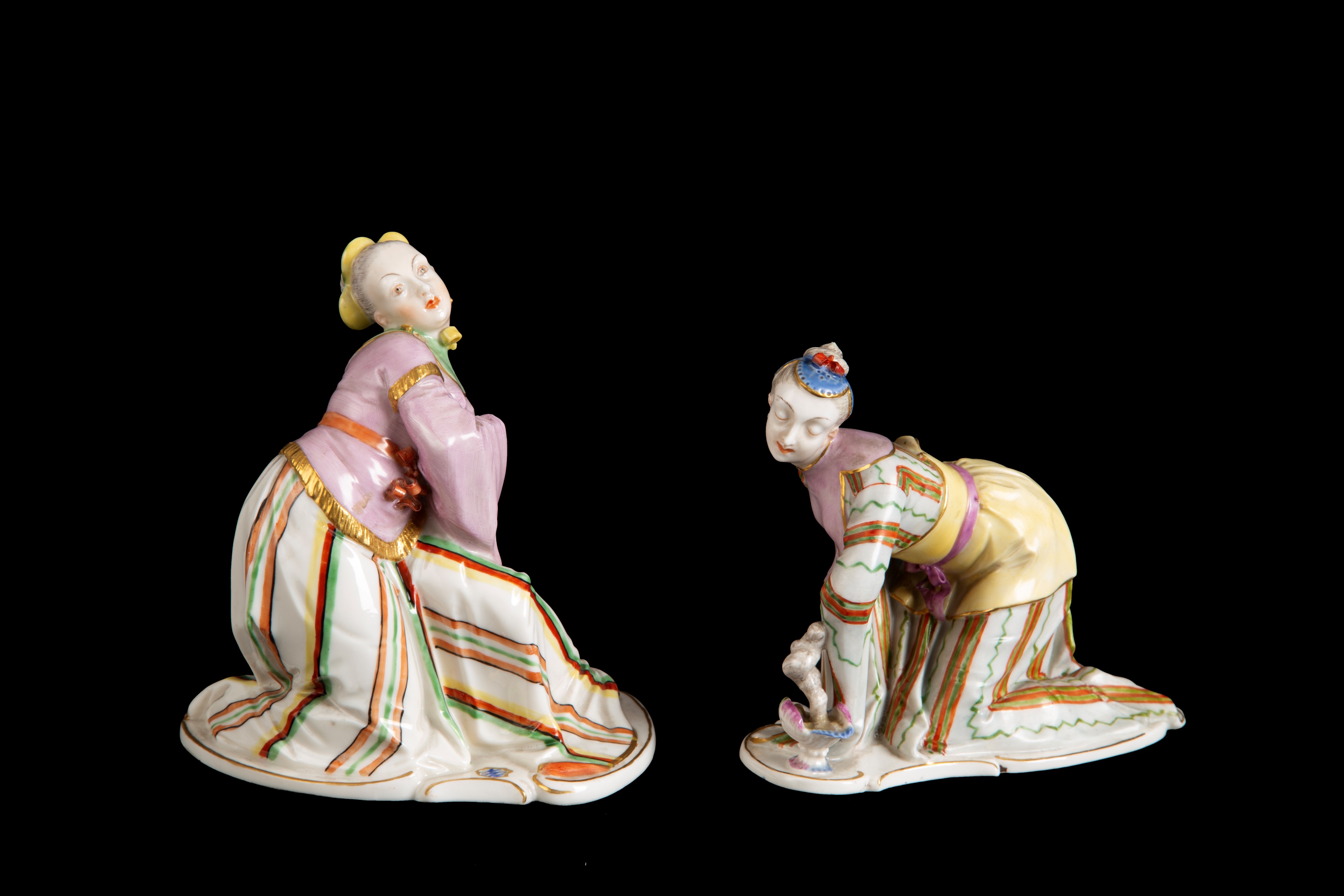 Two polychrome porcelain sculptures depicting "CHINESE DANCERS." Based on the model by Franz Anton Bustelli. NYMPHENBURG Manufactory, Munich. One marked on the base. 19th century.