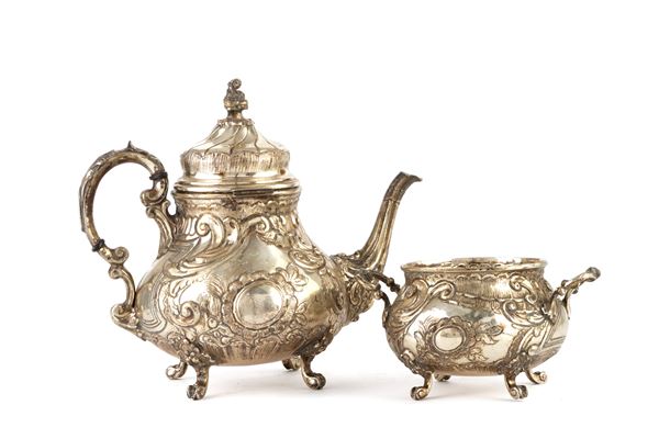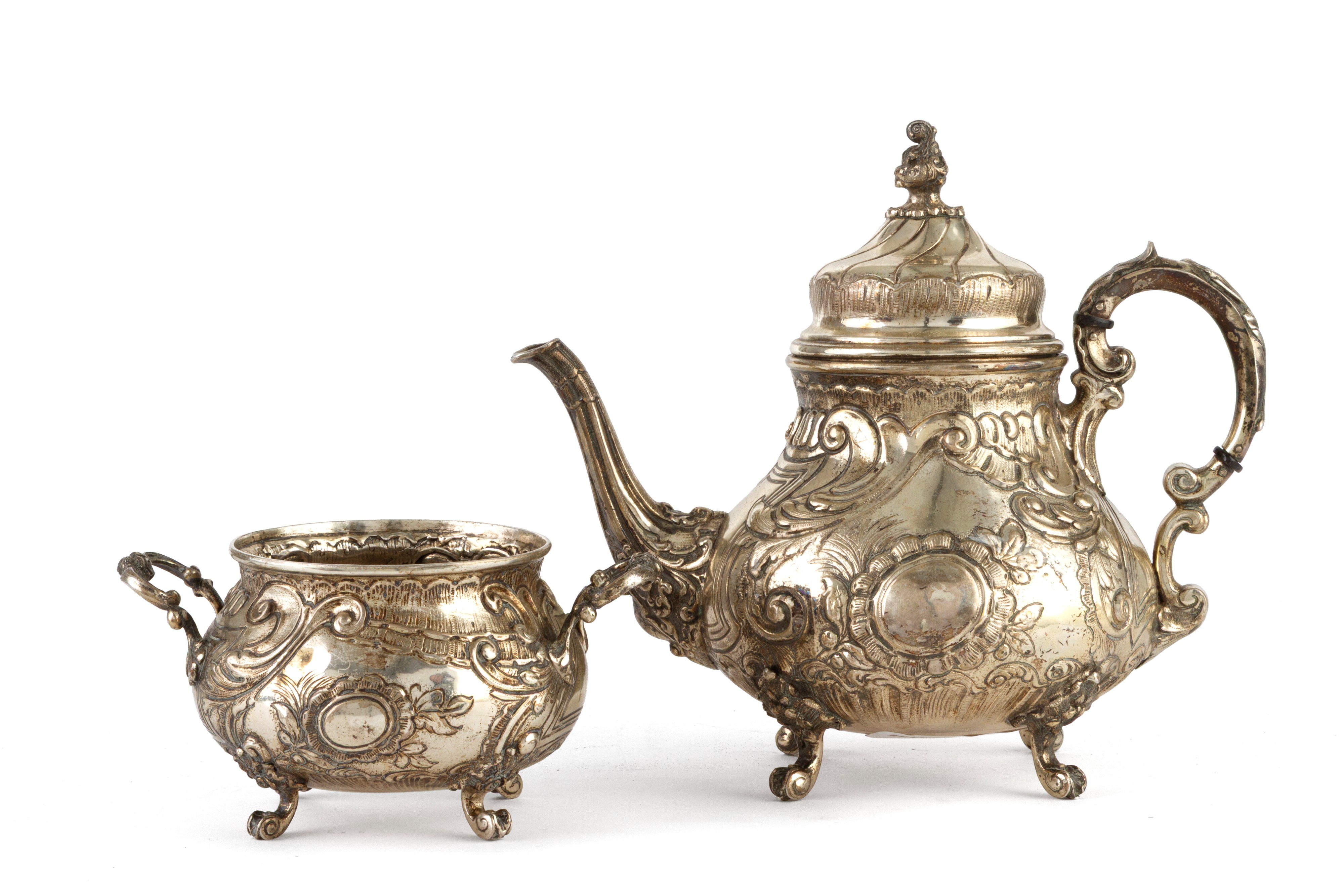 800 silver teapot and sugar bowl, approx. 1300 grams total. 20th century.