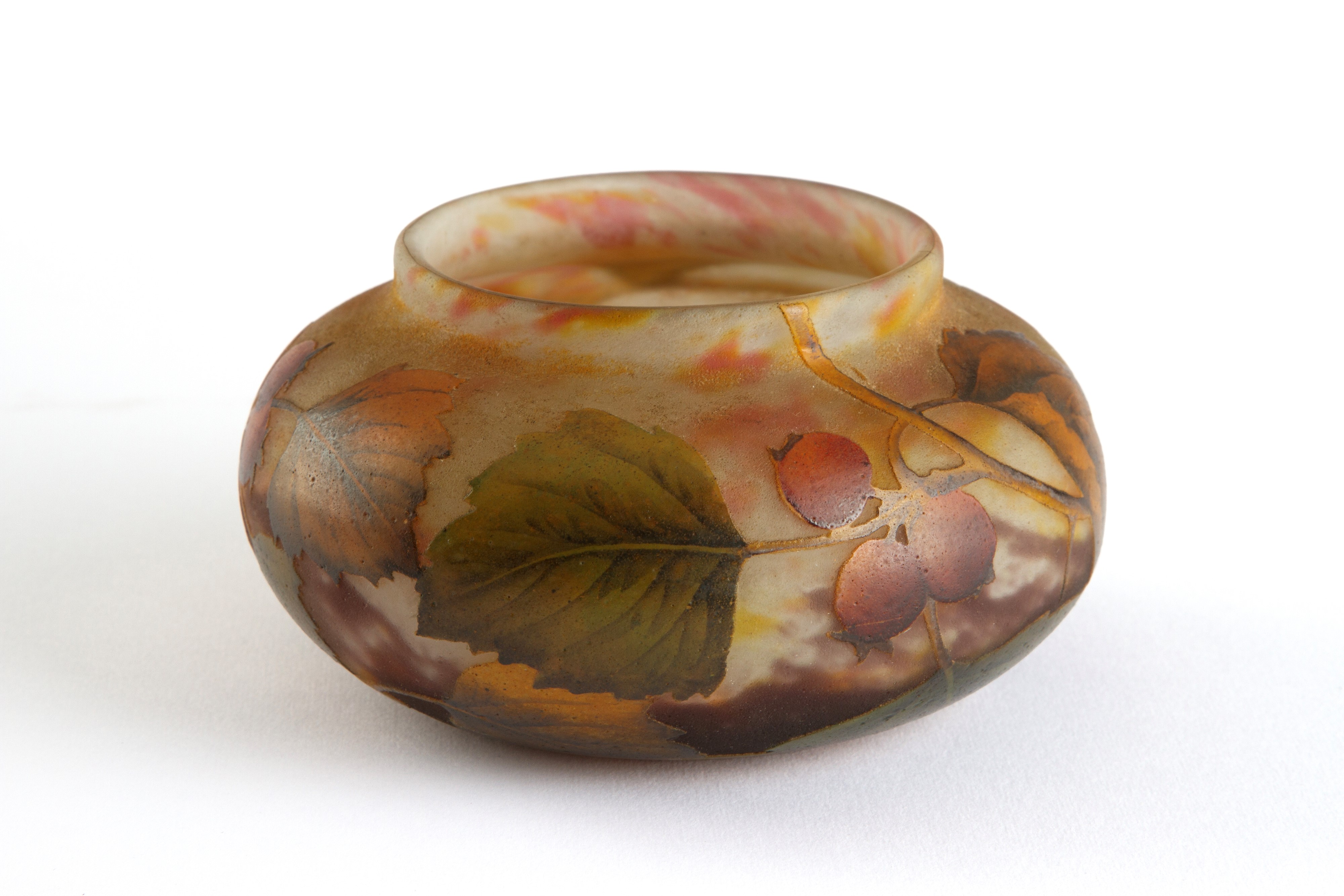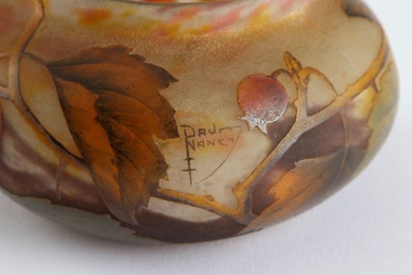 Glass bowl with floral motifs. Signed on the side: DAUM, Nancy.