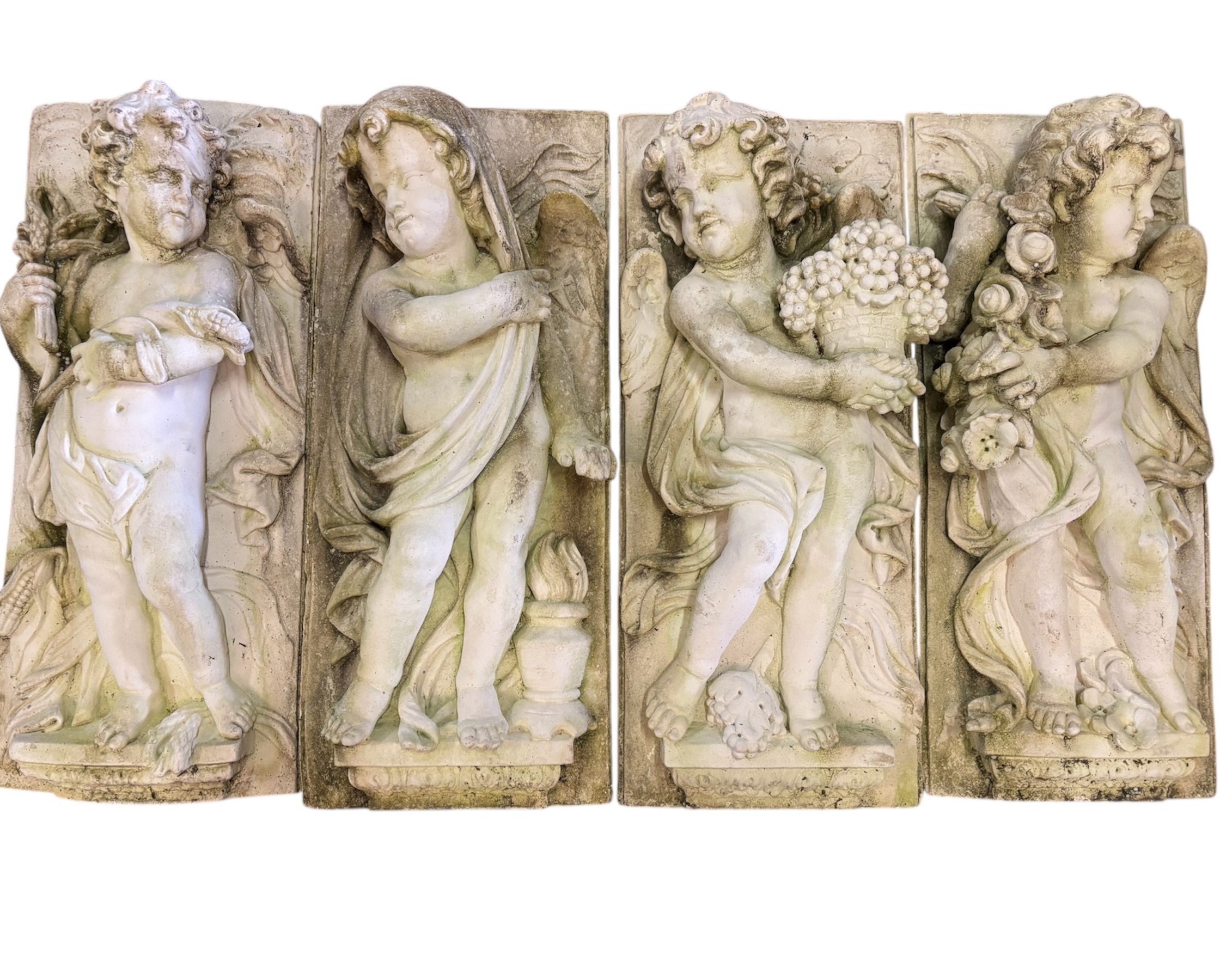Four "FOUR SEASONS" agglomerate stone plaques.