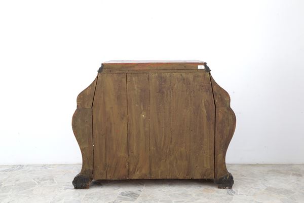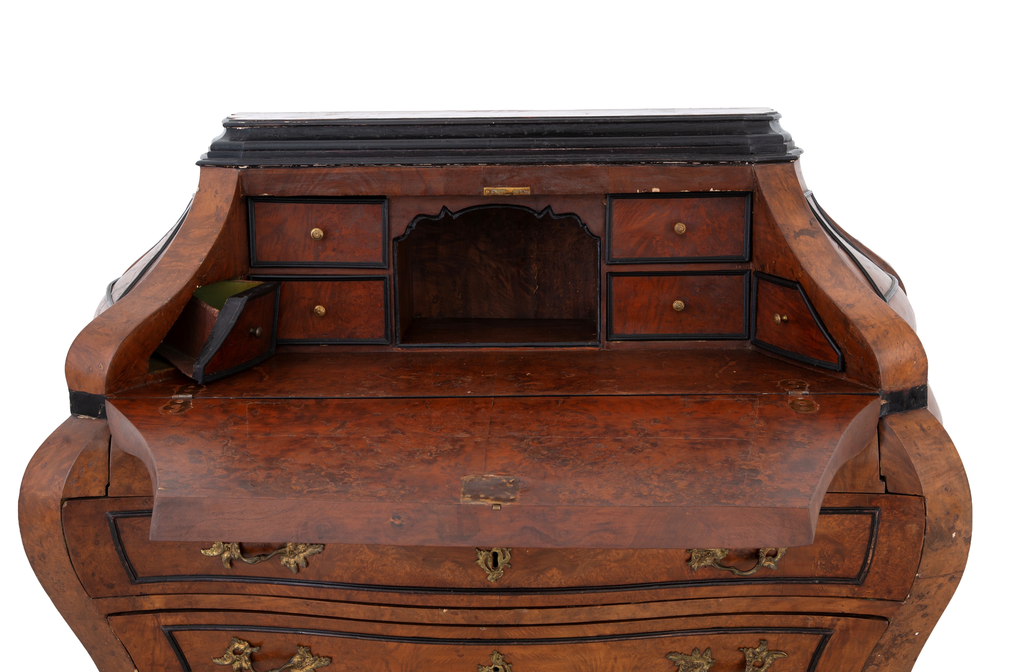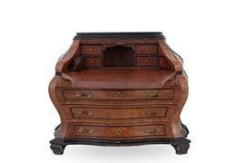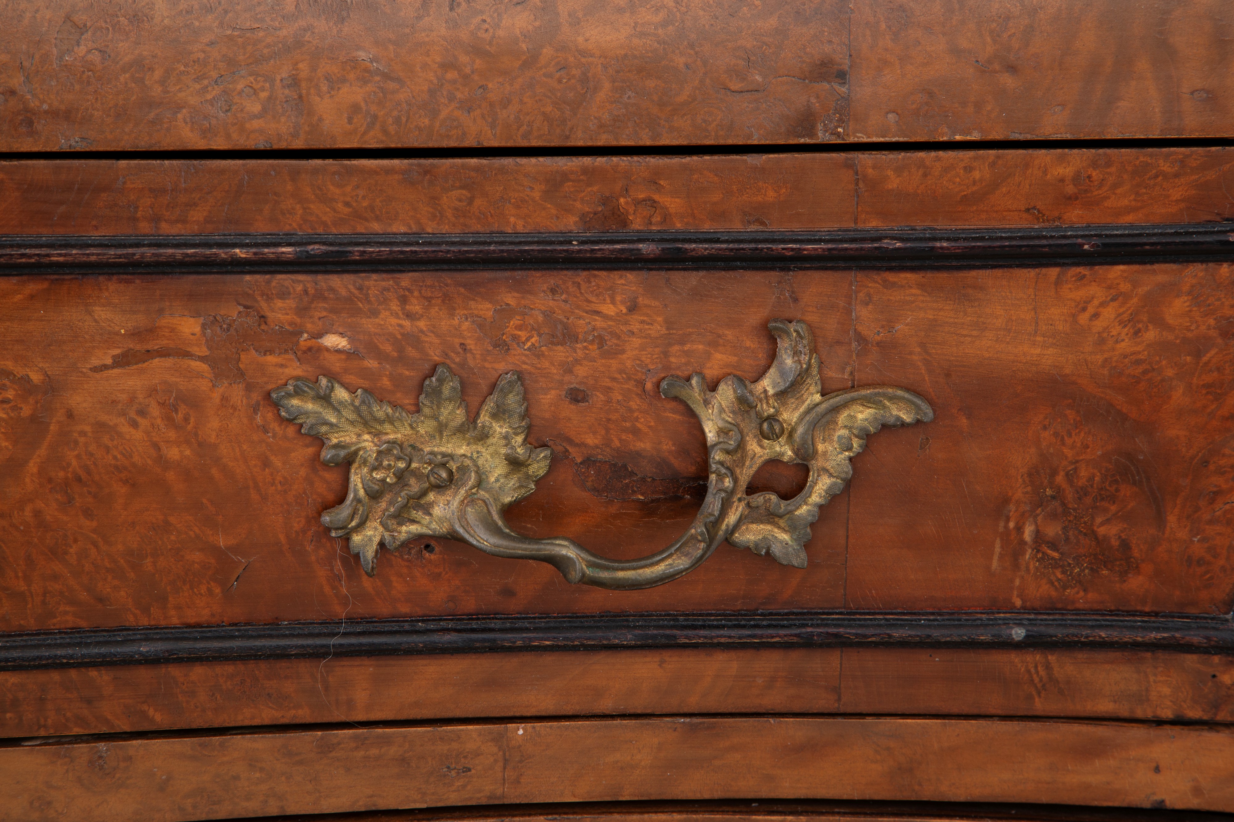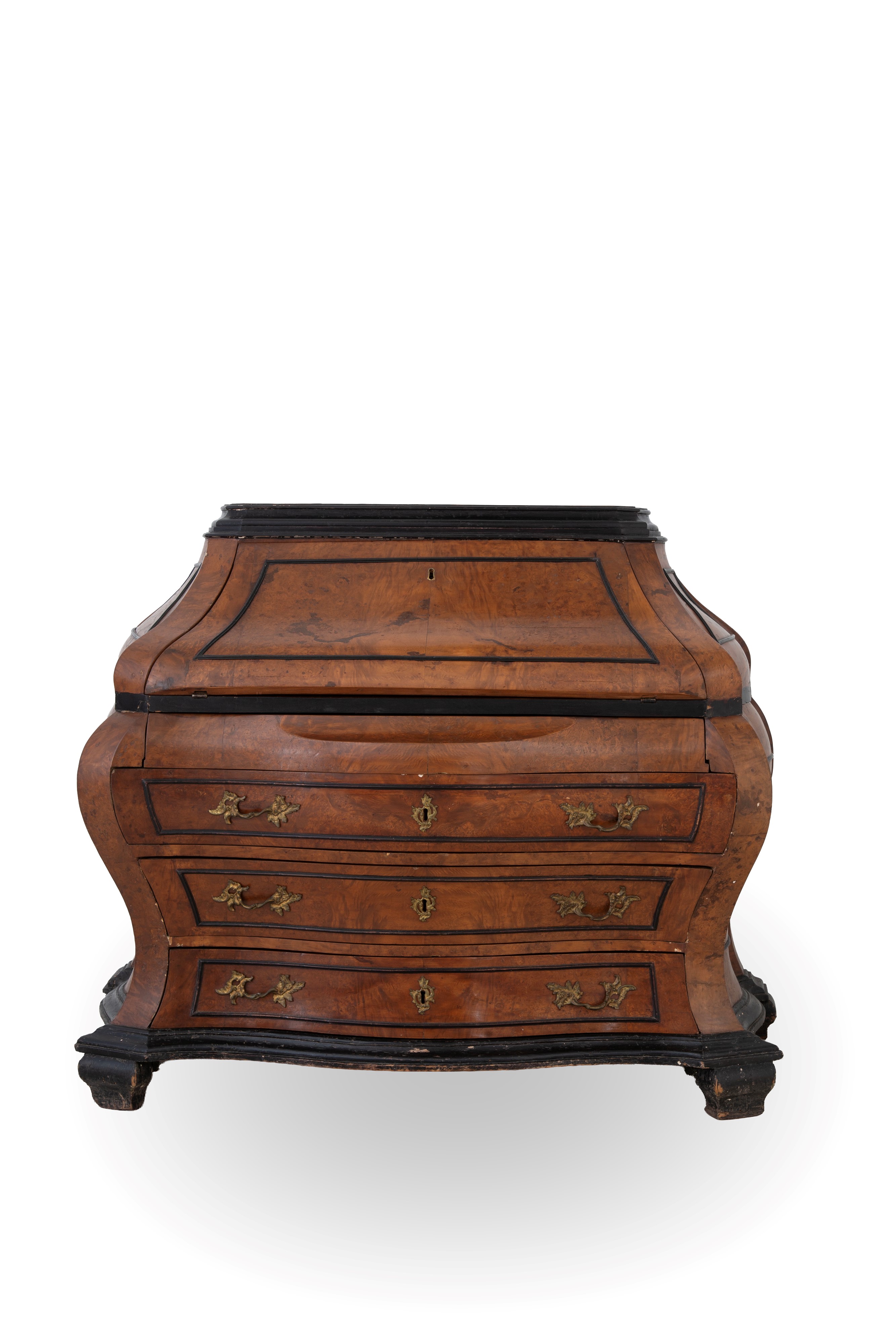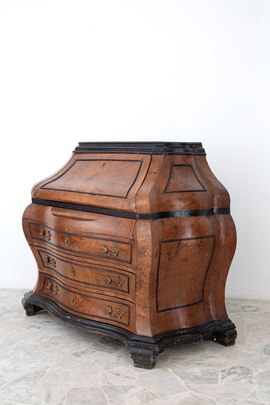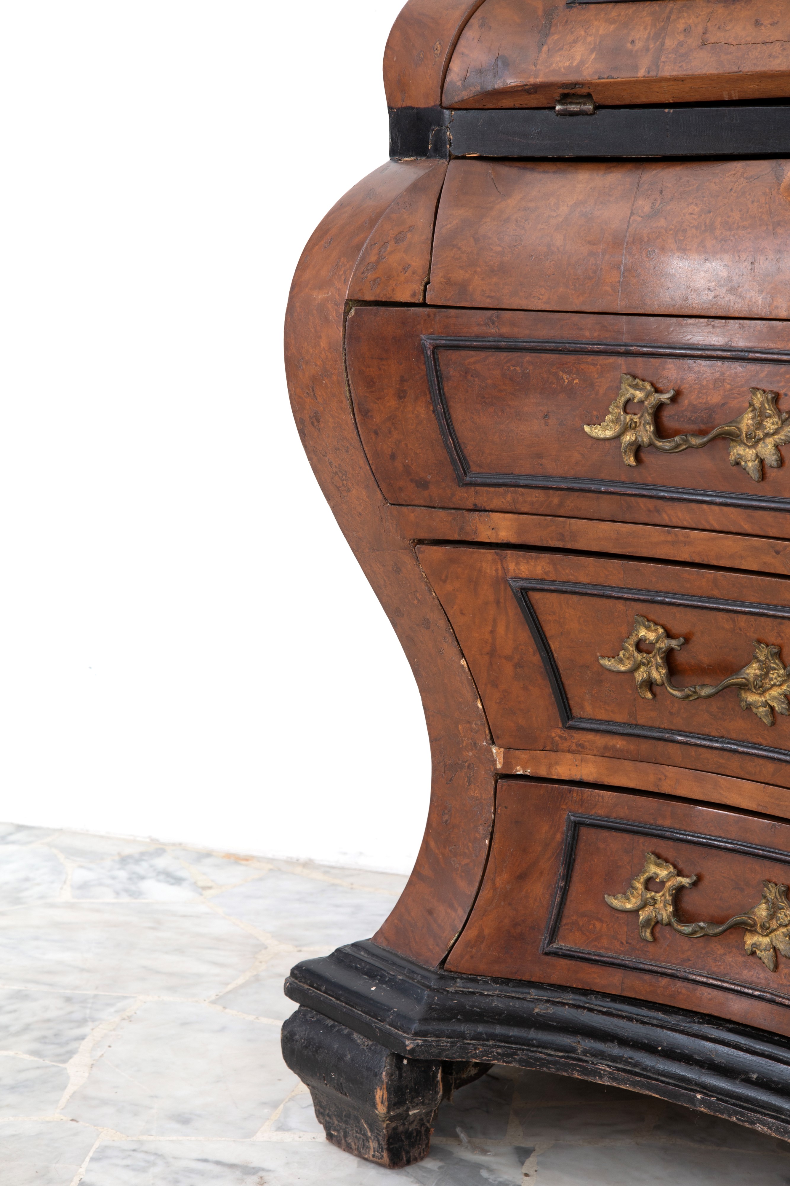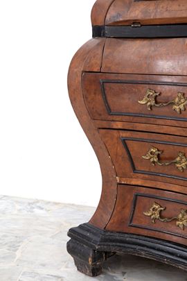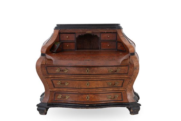 Drop-leaf cabinet with curved front and sides, veneered in walnut burl. Lombardy. 18th century. Minor defects.